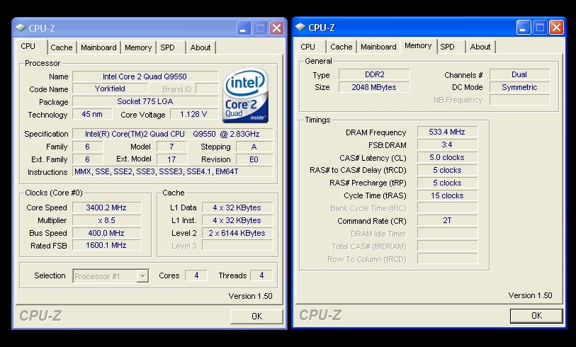 Q9550 @3400 (8.5*400) 1.15v (ολα τα αλλα στο normal)