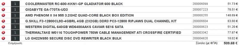 ionas1442169305 Ιανουάριος 18, 2010 Author #5 Ιανουάριος 18, 2010 λιγα κ λιγο απο ολα οχι απαιτητικα ιδιετερα απλα ας εχει κατι καλο για να κρατησει λιγο.αρχικα θα μεινει με την παλια του οθονη μια 17 tft για αυτο κ θα του δωσω μια παλια 8500 που εχω για να κανει οτι θελει ετσι κ αλλιως σε αυτες τις αναλυσεις δεν θα εχει προβλημα,επειτα μαζι με οθονη θα παρει κ καρτα γραφικων εκτως αν το ποσο ειναι μικρο κ παρει απυθειας κ καρτα γρφικων κ μετα παρει μονο οθονη...πιστευω πως ο phenom ειναι αυτος που κανει τωρα ο i5 δεν μου αρεσει ως socket γενικα για αυτο κ πηγα κατευθειαν σε am3.μια 5850 αργοτερα μαζι με την οθονη θα θεωρηθει υπερβολικη λετε για ενα συστημα με σταθεροτητα μαζι με τα υπολοιπα,για να μην παρω τωρα μια 5770 ας πουμε?σε λιγο ποσταρω μια συνθεση να μου πειτε πανω σε αυτη τι να αλλαξω:ionas added 17 Minutes and 38 Seconds later...λοιπον¨:CASE:CoolerMaster HAF 922 Case (RC-922M-KKN1-GP) 101,72 € (λογω επιλογης)MB:Gigabyte GA-MA770T-UD3P (sAM3, DDR3, 770) 80,00 €ή MSI 770-C45 (sAM3, DDR3, AMD770) 52,99 € CPU:AMD Phenom II x4 965 (AM3, 3.4GHz, Cache 8MB, Box) 165 €RAM:OCZ Black Edition AMD Ready 4GB Kit DDR3-1600 (2 x 2GB, PC3-12800, 8-8-8-24, OCZ3BE100C8LV4GK) 119,00 €PSU:Thermaltake Toughpower W0116RE PSU (750W) 108,50 € + 60 σκληρος κ dvd *αν μπει κ gpu:Sapphire 5850 SVGA (PCI-Express, 1GB) 243,00 € μου φενεται οτι το πλαισιο(η παραπανω τιμες ειναι ολες απο πλαισιο) τα εχει καπως ακριβα γιατι κοιταγα σε συγκριση με pc1 το οποιο τα εχει πολυ κατω λετε να γινει απο κει η αγορα η απλα πλαισιο?ionas added 16 Minutes and 38 Seconds later...Παντως ιδια συνθεση απο pc1 παει 130 κατω γιατι τετια διαφορα?