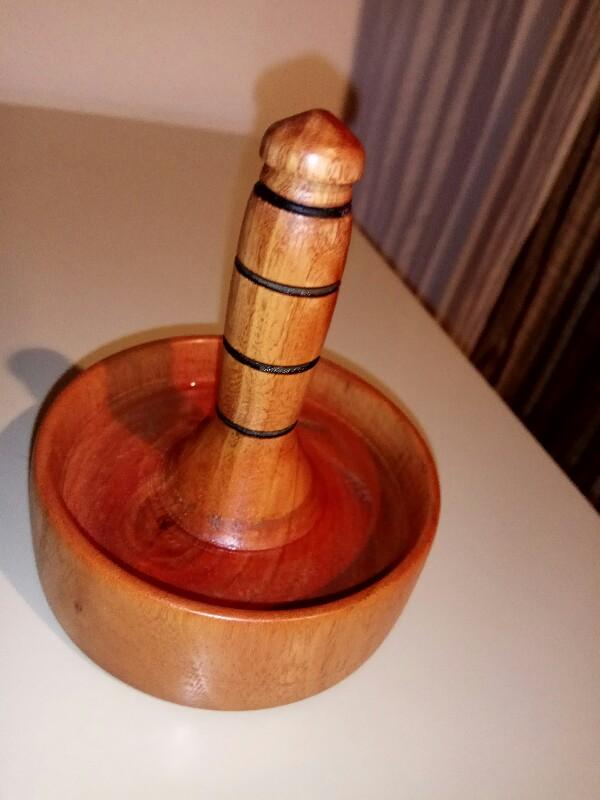 2.Σφαίρα από μαόνι (νομίζω πιο ωραία από την προηγούμενη που είχα κάνει με οξυά), καλογυαλισμένη με όλα τα νούμερα των γυαλόχαρτων.