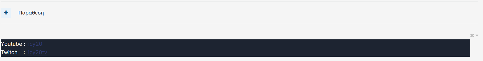icy20 1 ώρα πριν Author #3 1 ώρα πριν Βασικα θελω να ξηλωσω ολα τα μπλαμπλα και να αφησω μονο τα 2 λινκ απλα το 2ο να εχει αυτο σαν source : https://www.youtube.com/@Icy20 6 λεπτά πριν, το μέλος YDinopoulos έγραψε: Στειλε μου την σε ΡΜ να δω αν μπορω εγω να στην βαλω (την υπογραφη ε! )