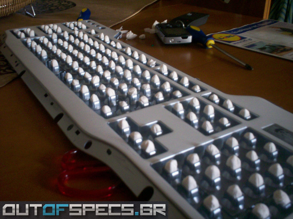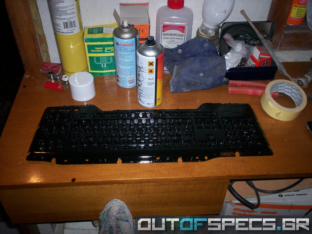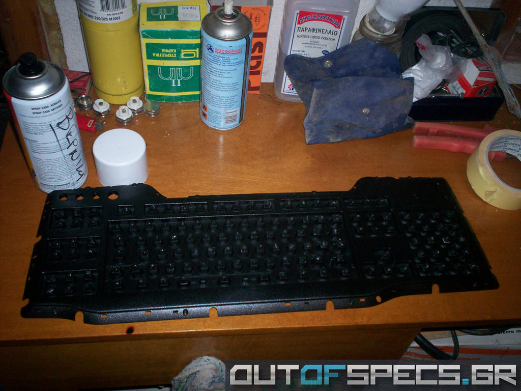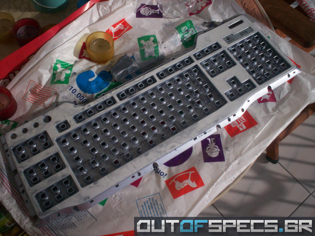 Μεγάλη προσοχή εδώ.ΟΛΕΣ οι θήκες του πληκτρολογίου καλύφτηκαν με χαρτί για να μην μπει μπογιά και βερνίκι αργότερα..στους οδηγούς των πλήκτρων,με συνεπεία να κολλάνε κτλ.
