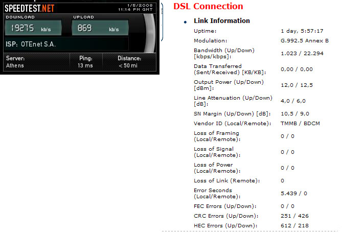 4/6 db attenuation!!!!??? :drool: ,απο δευτερα-τριτη που θα γινει η αναβαθμιση και σε μενα, εχω μεγαλη περιεργεια ποσο (και αν..) θα συγχρονιζω πανω απο τα 5μβιτ λογω του 50db attenuation?(5.16μβιτ μου βγαζει το tool του adslgr :( )