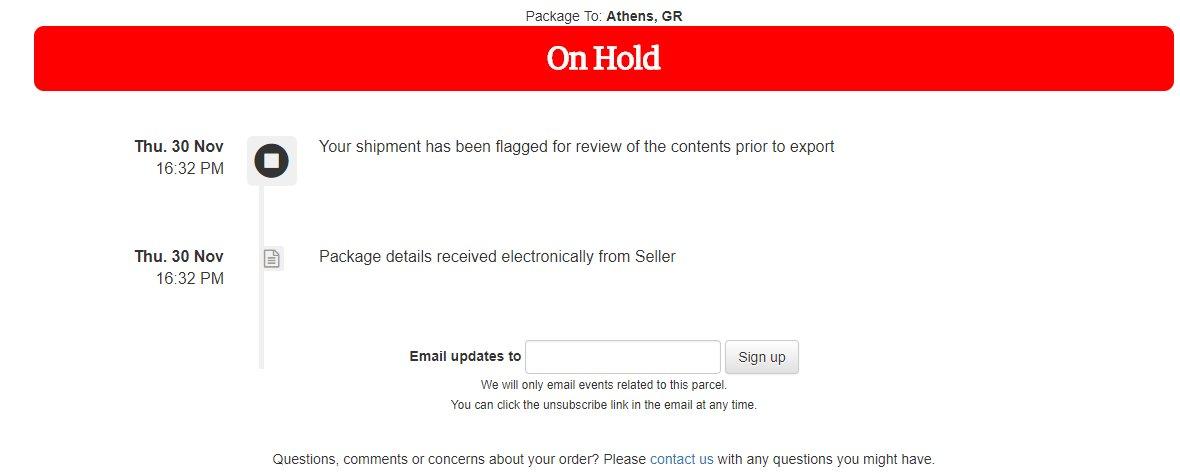 karmen1983 Δεκέμβριος 5, 2017 #865 Δεκέμβριος 5, 2017 Παραγγελία από amazon Αγγλίας και βλέπω αυτό με κόκκινη ένδειξη ON HOLD Thu. 30 Nov 16:32 PM - Your shipment has been flagged for review of the contents prior to export Thu. 30 Nov 16:32 PM - Package details received electronically from Seller Εχει κανείς ιδέα τι παίζει; Φορτιστές κινητού είναι. https://www.i-parcel.com/en/