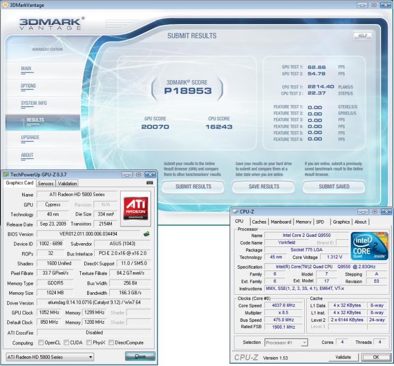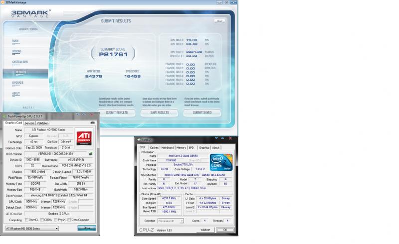 Με το συστημα της υπογραφης την ταση στην 5870 1.25v με core 1030mhz μνημες στα 1300mhz και τον q9550 στα 3.8mhz.