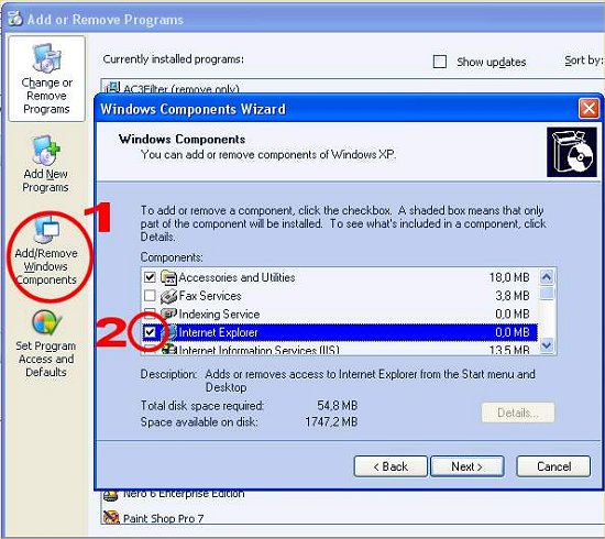 και ξε-τσεκάρεις την επιλογή του ΙΕ και πατάς κανα-δυό φορές "Next".