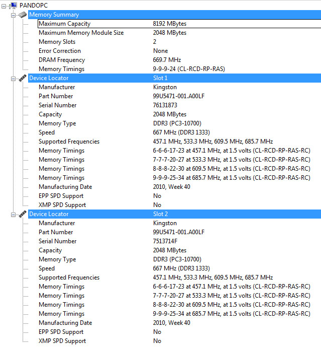 Επισύναψα και ένα screenshot με πληροφορίες για τις μνήμες και CPU