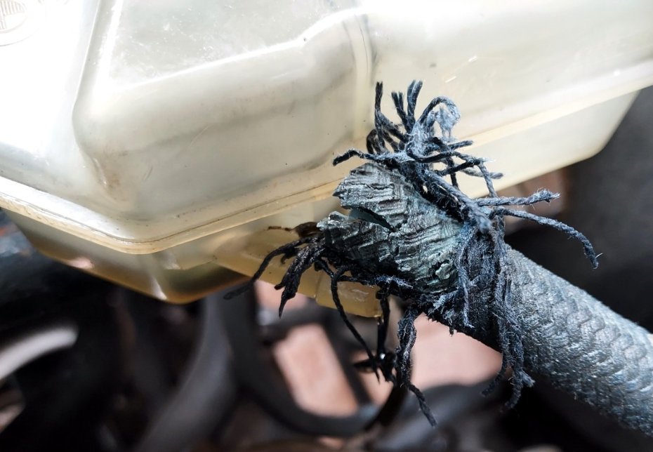 Ψώνισα 1 μέτρο σωληνάκι ανθεκτικό στο DOT 4 υγρό φρένων για τη γραμμή δοχείο φρένων-τρομπάκι συμπλέκτη. Το δικό μου το έχω κόψει 3-4 φορές στην άκρη όλα αυτά τα χρόνια. Το Περασμένο Σάββατο ήταν το τελευταίο κόψιμο που επέτρεπε το μήκος, οπότε πρώτη προτεραιότητα η αλλαγή του, αύριο.