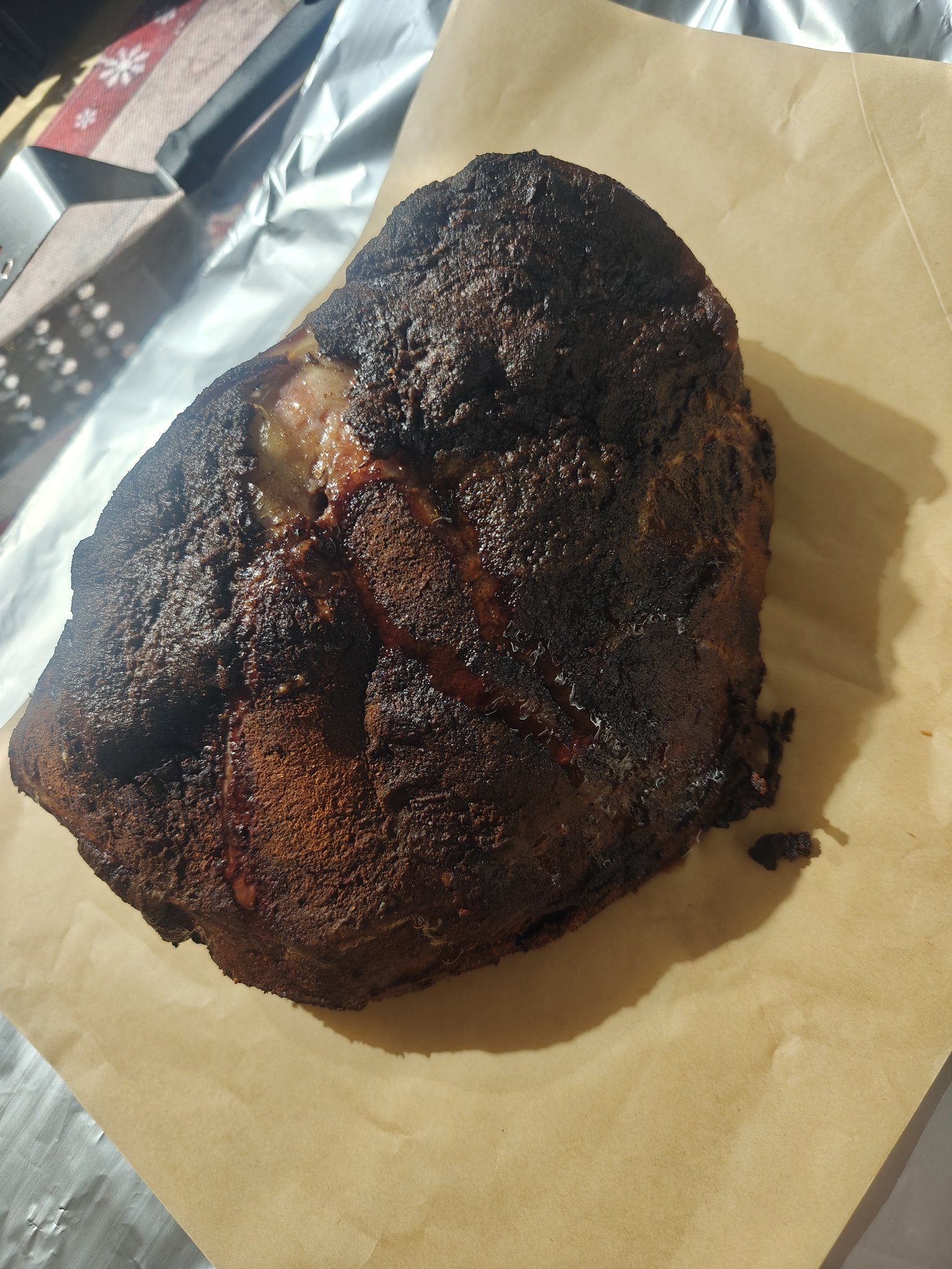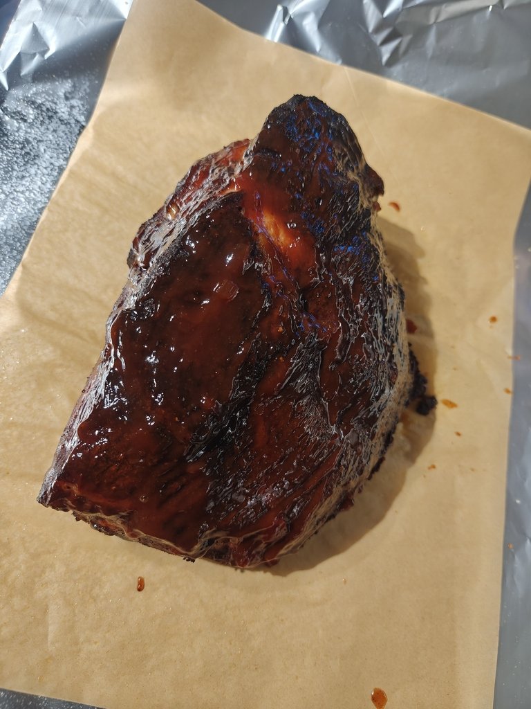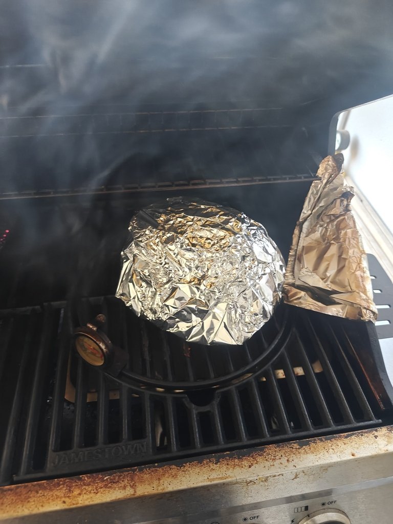Βγήκε στους 71... Μπήκε μυλοξιδο...μπάρμπεκιου... καστανή ζάχαρη... Και μετά αλουμηνοχαρτο και πάλι μέσα.... -