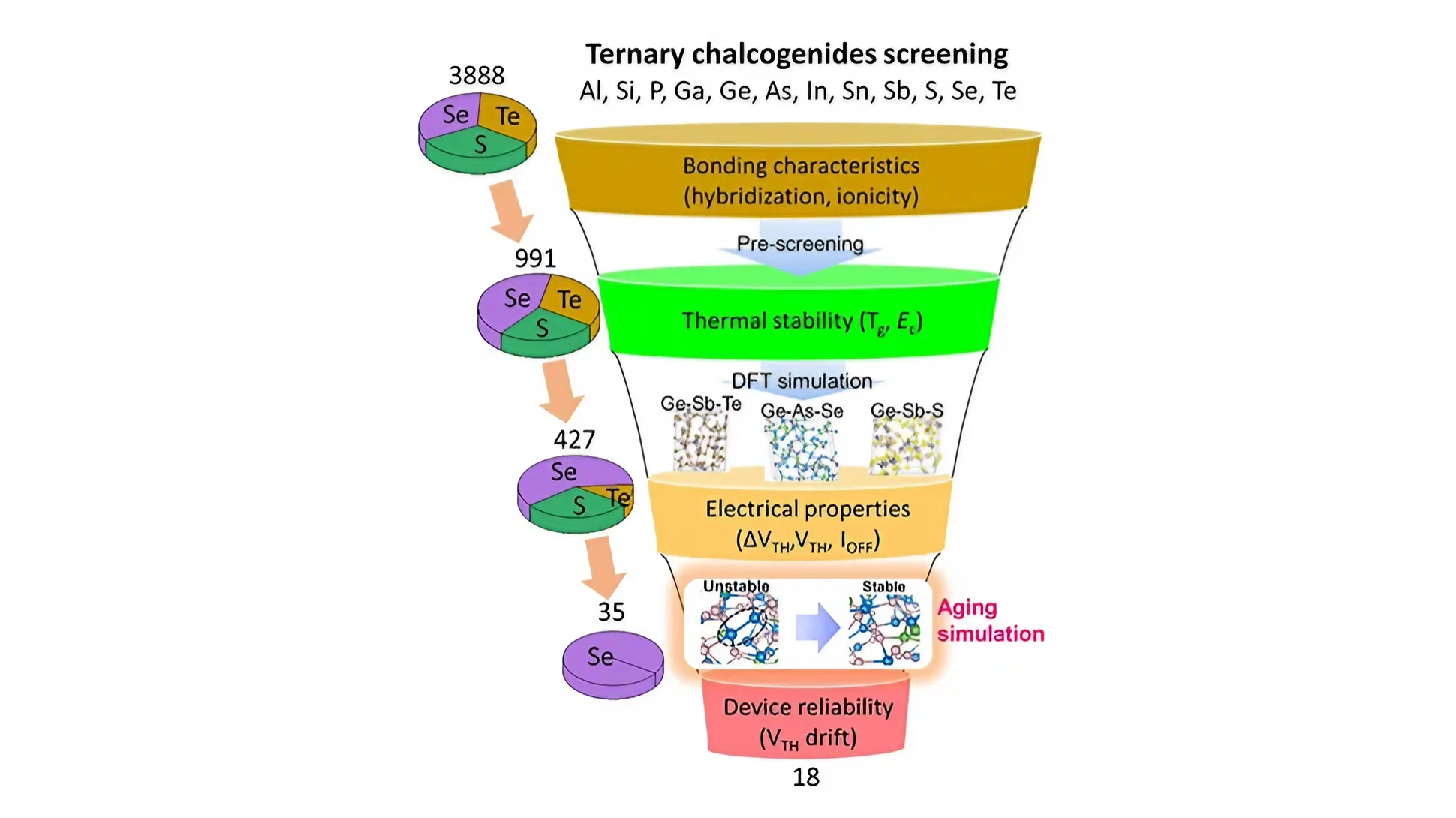 Η επιλογή του κατάλληλου χαλκογονιδίου για το SOM δεν είναι απλή υπόθεση. Η Samsung χρησιμοποίησε προηγμένα μοντέλα υπολογιστών για να προβλέψει τις ιδιότητες διαφόρων συνδυασμών χαλκογονιδίου , περιορίζοντας τον αριθμό από περίπου 4.000 πιθανά υλικά σε 18 υποψήφιους. Με αυτόν τον τρόπο, η Samsung απέφυγε τις χρονοβόρες και κοστοβόρες φυσικές δοκιμές, αξιοποιώντας αντ’ αυτού προσομοιώσεις που αναλύουν τη θερμική σταθερότητα, την αγώγιμη συμπεριφορά και άλλες βασικές ιδιότητες των υλικών.