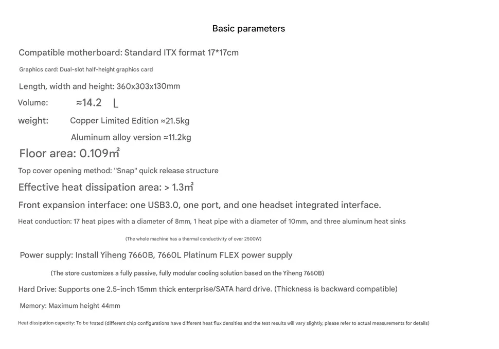 Το κουτί υποστηρίζει μόνο Mini-ITX μητρικές (170 × 170 mm), μνήμες έως 44 mm ύψος, Flex ATX PSU και έναν αποθηκευτικό δίσκο 2.5”. Η GPU πρέπει να είναι half-height, πράγμα που περιορίζει τις επιλογές σε mid-range μοντέλα. Αυτό σημαίνει πως δεν είναι λύση για enthusiast gaming rigs με RTX 5090 ή Radeon high-end, αλλά περισσότερο για compact workstations, HTPCs ή συστήματα που τρέχουν AI inference σε πιο μετριοπαθείς κάρτες.