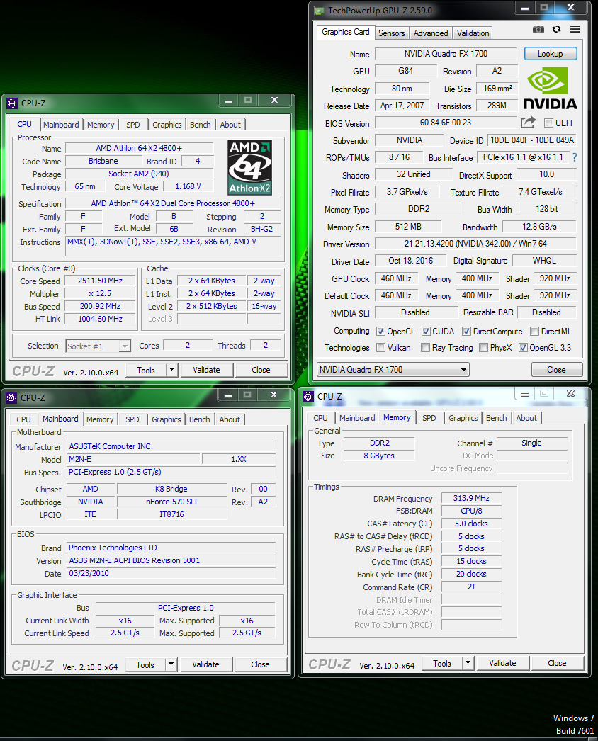 GPU: nVidia Quadro FX1700 512MB (2x DVI + 1x S-Video)