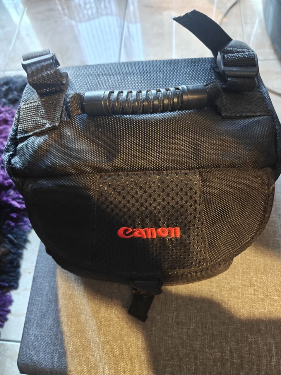 Μαζί φορτιστής μπαταριών της Canon και τσάντα μεταφοράς.