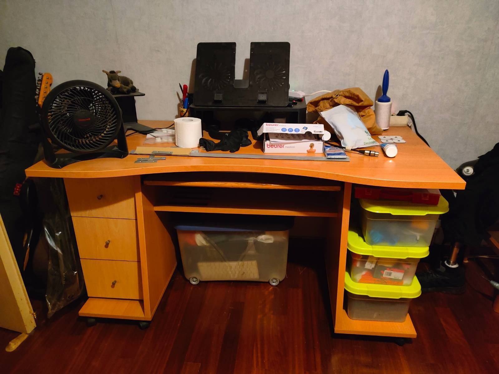 Χαρίζεται μεγαλο γραφείο υπολογιστή, ξύλινο με ροδάκια, διαστάσεις 140cm μήκος, 69cm βάθος, 74cm ύψος.