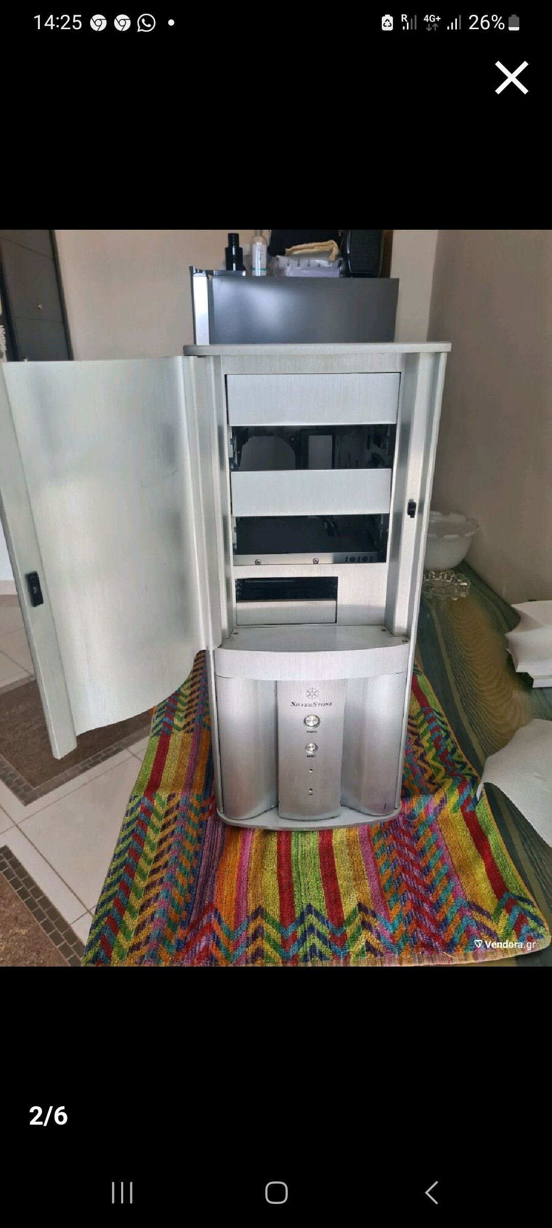 Το ασημι Silverstone big tower με πρόσοψη αλουμινίου ταλαιπωρημενο με σπασμένες τις usb θύρες 12€