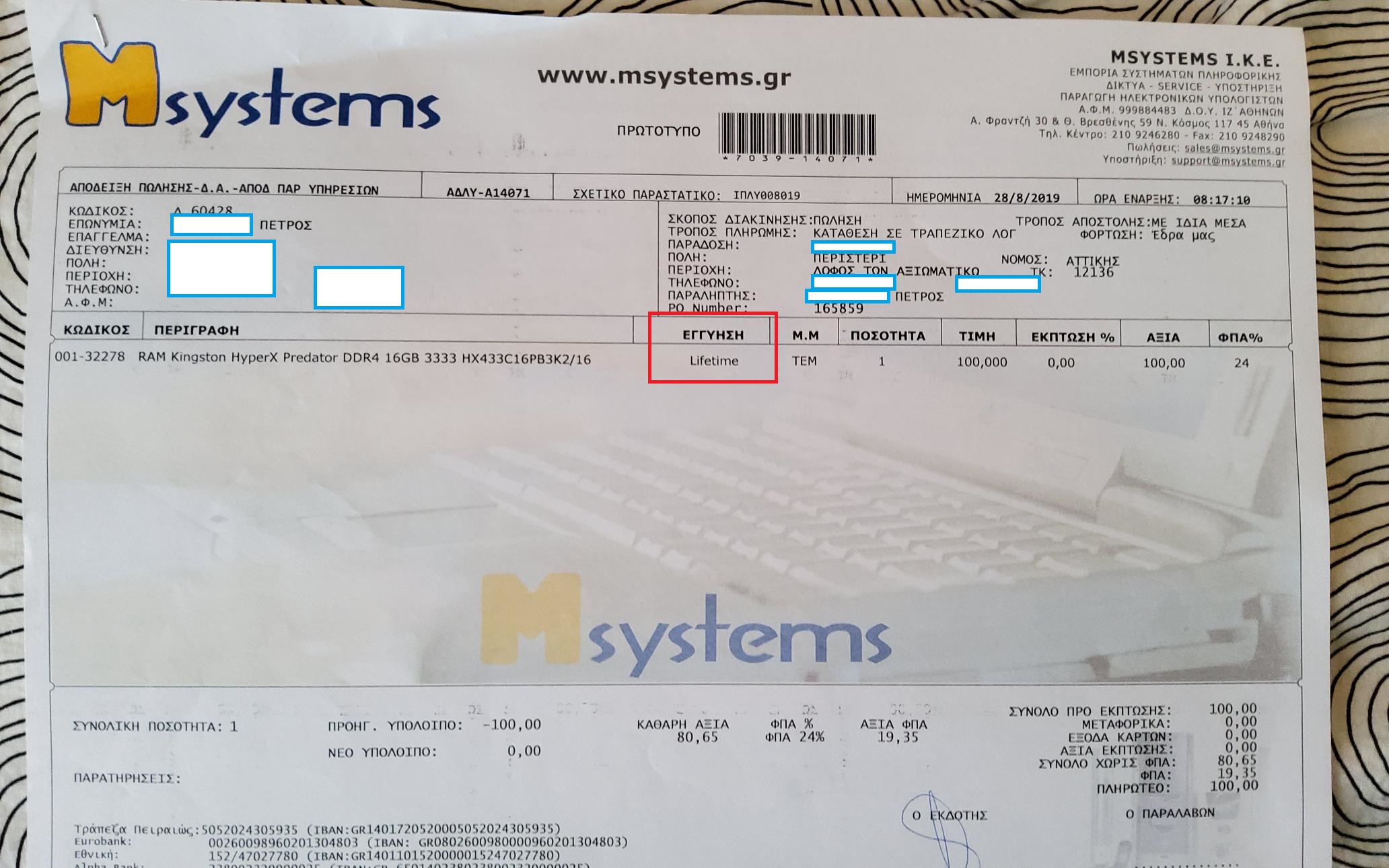 Εγγύηση lifetime, αγορά από msystems.