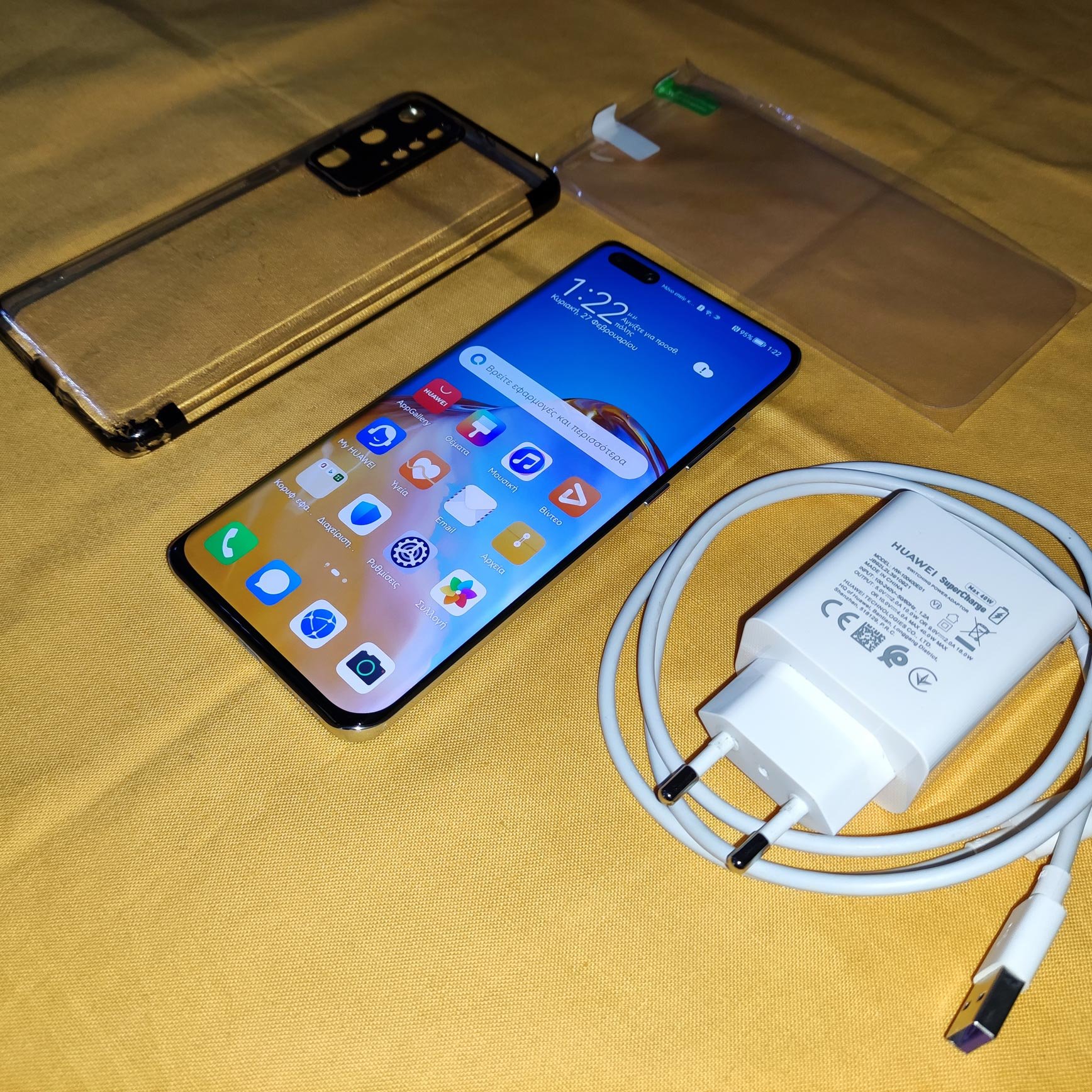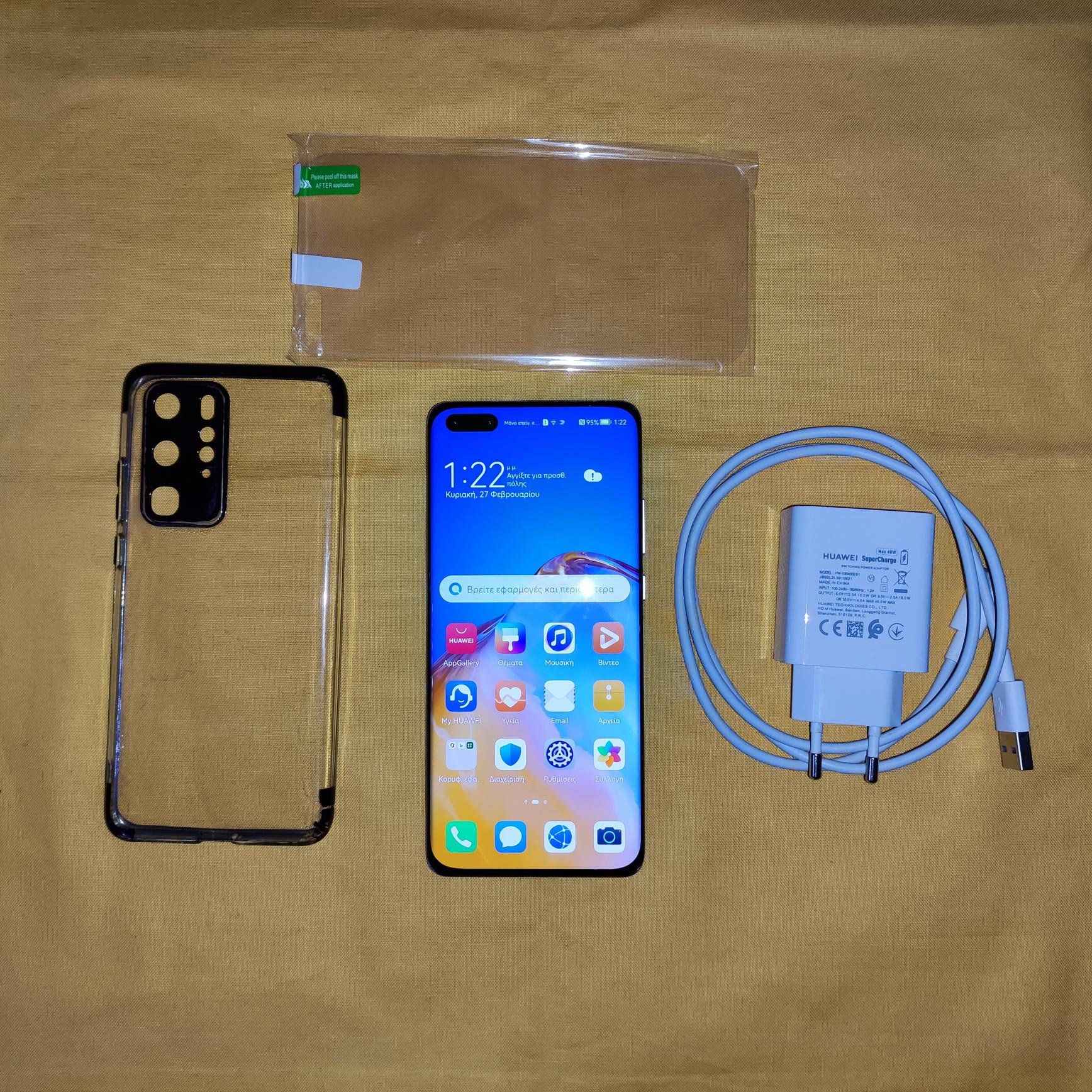 Περιλαμβάνονται: Τηλέφωνο, Φορτιστής , Καλώδιο USB Type-C, μία θήκη αρκετά ταλαιπωρημένη και μία ολοκαίνουρια μαλακή προστασία οθόνης (θα τοποθετηθεί από τον αγοραστή).