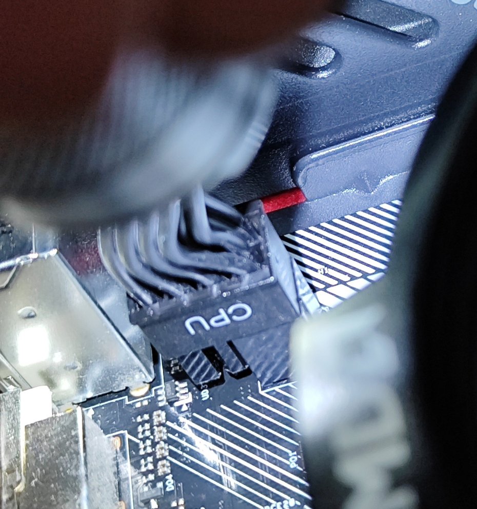 Ήταν 4αρι κι αυτό... Στη μητρική με το κόκκινο πλαίσιο στη φώτο, είναι 4pin η υποδοχή. Εκεί να κουμπώσει αυτό το βύσμα από το τροφοδοτικό που γράφει CPU λοιπόν; Τι λάθος έκανα; Αφού δεν άνοιξε ο υπολογιστής έτσι που το είχα. Δηλαδή ζημιά έκανα; Που;