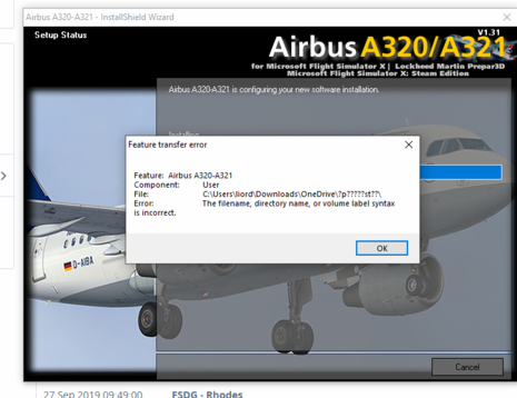 πριν καμια 5 μερερς ειχα αγορασει ενα add για το fsx και το εκανα εγκατασταση με ενεργοποιημενο το onedrive.Μετα απο μια μερα εγινε κατι και εκανα φορματ τον υπολογιστη και εσβησα ολα τα αρχεια και μεσα απο το onedrive και απο το καδο ανακυκλωσης του onedrive οριστικα.Μετα πηγα να εγκαταστησω παλι το add και μου βγαζει το μυνημα της φωτο.Μετα απο μυνηματα oi ανθρωποι μου πιστωσαν ντα χρηματα και πηρα ξανα add αλλα αλλο μοντελο αεροπλανου αλλα της ιδιας εταιριας.Πριν 20 λεπτα πηγα να το εγκαταστησω και μου βγαζει παλι το ιδιο μυνημα.Εχω κλεισει τελειως το Ovedrive εδω και 1 μερα.Δεν ξερω τι φταιει? Το προηγουμενο ηταν το AEROSOFT AIRBUS A318-319, και το αρχειο του σφαλματος ειναι το διπλα.