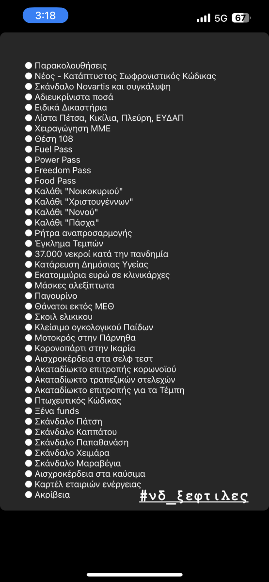 Άμα δεις το ναι στην απάντηση μου, δείξε το μου. Δεν έγραψα συνταξιούχος. Άμα είσαι από τους λίγους που δεν ξέρουν την ηλικία μου για να ξέρεις ότι δεν είμαι συνταξιούχος, Γκιόνι μου. Επίσης έχει emoji, εννοώντας ότι το έγραψα πιο πριν αλλά μάλλον δεν βλέπεις. επισης πίτσα γιατί; Γκιονι μου ποιος είναι πάνω, οποιοσ και να είναι δεν αλλάζει κάτι για μένα. ΑντιΝΔ είμαι μέχρι το κόκκαλο, επίσης δεν ψήφισα μεγάλο κόμμα, και ούτε πρόκειται. Για μένα είναι εγκληματίες που είναι ελεύθεροι έξω. Πριν το Γεωργακη και το Καστελλόριζο, ξέρω καλά ποιοι μας φέρανε εδώ. Οσο για τις αντιδράσεις στο ποστ σου, είναι από άτομα που ένα εκ αυτών έκανε θριαμβευτική ανάρτηση με στο FB μετά την νίκη Κουλη και όταν του έγραψα τα καθέκαστα , με έκανε μπλοκ. Αλλά αυτός είναι ο Έλληνας, πρέπει κάπου να ξεσπάει αν έχασε δίκαια το πρωτάθλημα η δεν πήρε ευρωπαϊκό πριν λίγες ώρες. -