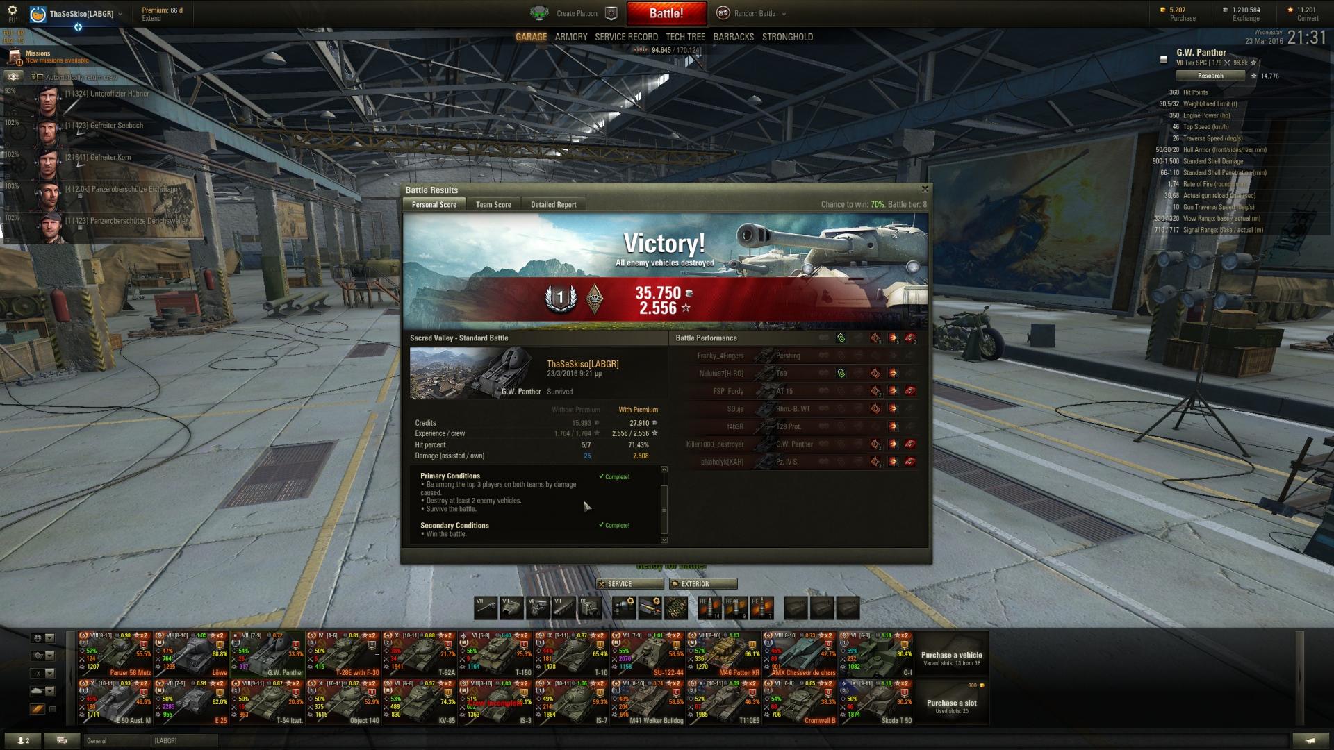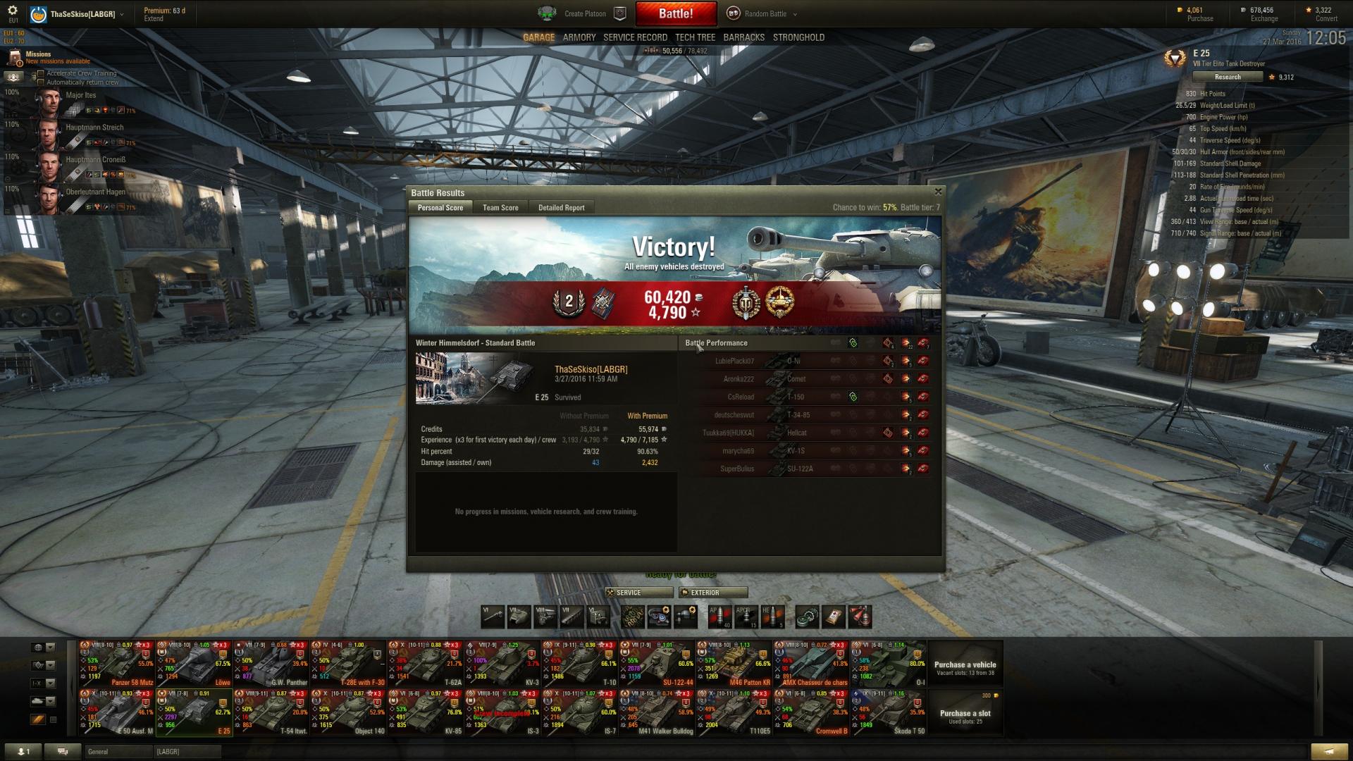Και για να συμπληρώσω το φίλτατο Χρίστο σε 3-4-5 tiers μη στέλνεις το προσωπικό στα barracks και έτσι και φορτώσεις χρυσό μη βιαστείς να αγοράσεις κρεββάτια και θέσεις στο γκαράζ.Κατά καιρούς τα ρίχνουν στη μισή τιμή οπότε με 600 χρυσά χτυπάς 4 θέσεις γκαράζ και με 300 2 16άδες κρεββάτια στο στρατώνα. Πείτε κανένα xvm mod pack γιατί του odem mortis το ξεσκίσανε,μαζί με το damage to win8 βγάζει και tank info πάνελ στα δεξιά και με μόλις κοιτάζω κάποιο άρμα φιλικό η αντίπαλο μου γεμίζει σαβουροπληροφορίες δεξιά.Σε λίγο δεν θα βλέπω ούτε το άρμα μου.