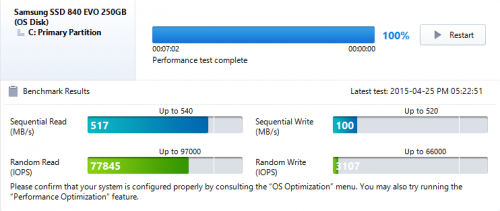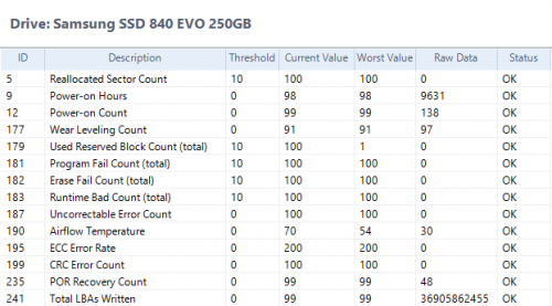 Καλησπέρα σε όλους. Έχω τον 250άρη EVO κάτι παραπάνω απο ένα χρόνο και αντιμετωπίζω τα εξής προβλήματα: 1. Το Hard Disk Sentinel αναφέρει υγεία δίσκου 91% και προτείνει τακτικό backup. Αναφέρει σαν πρόβλημα το Wear Leveling Count αλλά το SMART λέει Status OK. Εν αντιθέσει το Magician δεν αναφέρει κανένα πρόβλημα. 2. Λόγω του παραπάνω προβλήματος έκανα και μερικά benchmarks να δω που βρίσκεται ο δίσκος. Η κατάσταση είναι αρκετά χάλια στα writes. Παραθέτω και τα αποτελέσματα πριν ένα χρόνο (φρέσκια εγκατάσταση) Παρακάτω είναι και το benchmark απο το Magician Τα ίδια χάλια στα writes. Ποια η γνώμη σας για τα παραπάνω. Οφείλονται στα γνωστά προβλήματα που διαβάζω οτι έχουν οι 840 EVO;