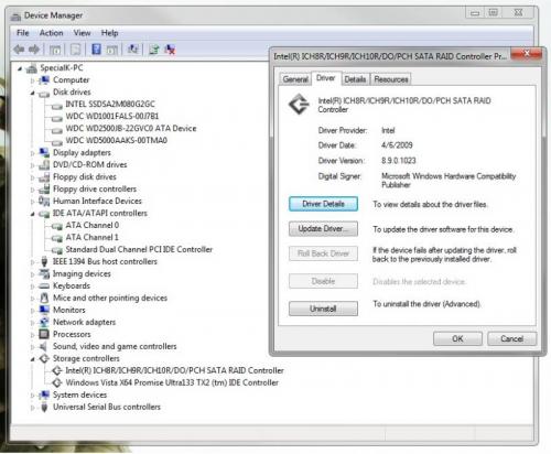 Εγώ έκανα το update αν και με κατατρόμαξε γιατί την πρώτη φορά μου έβγαλε ένα error οτι δεν μπορούσε να διαβάσει από το A:\-CD- αλλά στην δεύτερη έβγαλε ότι το update πέρασε κανονικά. Όλα αυτά αφού το είχα γυρίσει σε IDE για να κάνω το update. Αφού τελείωσε το ξαναγύρισα σε RAID που το είχα (χωρίς να φτιάξω RAID στην ουσία) Διαβάζω όμως ότι για να δουλέψει το trim πρέπει να μπουνε MS drivers. Για ρίξτε μια ματιά στο attachment...έχω intel, δεν έχω rollback. ΠΩΣ στο διάολο περνάω MS drivers?? ASUS maximus formula είναι το motherboard. Thanx!
