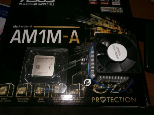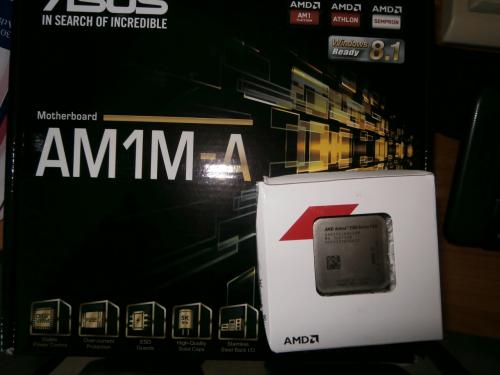 σημερα παρελαβα το νεο κατεβαστηρακι και οχι μονο !!!kabrinaki 5350 + asus AM1M-A !!!:hi: φορτωνω λειτουργικο και γραμμη για hwbot !!!!