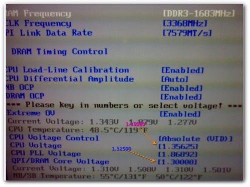 φυσικά τα 5 loops δεν είναι σίγουρα εχει περάσει και τα 15 αλλά δεν κράτησα φωτο και έτρεξα ένα με 5 για ποιο σύντομα και για να περιορίσω τουσ άπιστους . πάντως ανέφερα ποιο πάνω ότι το σύστημα κόλλησε μετά από 2,30 3 ώρες παιχνίδι και αναγκάστηκα να ανεβάσω το pll στο 1.86, τότε ενώ πέρασε τα 15 loops κράσαρε σε παιχνίδι , δηλ άσχετα με το linx το σύστημα πρέπει να αποδείξει την σταθερότητα του σε πραγματική χρήση , linx και άλλα τέτοια προγράμματα είναι δείκτες σταθερότητας και όχι το 100% πρεσάρουν μερί του υπολογιστή και όχι όλο το σύστημα . τέλος πάντων δέκτη η παρατήρηση σου gregorypeg:T: , παρακάτω μερικές φωτογραφίες από BIOS , Linx ( προσοχή στα βελάκια)