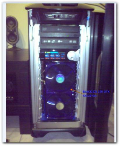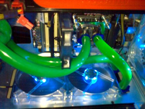 καλησπέρα . εδώ και περίπου 2 χρόνια η υδροψυξει μου δούλευε σερί , οπότε πήρα την απόφαση πριν μια εβδομάδα να την κάνω ένα σέρβις ( καινούργια ρακόρ, υγρά , καθάρισμα μπλοκ, και λίγο συμμάζεμα τα καλώδια) , μαζί έκανα και μια αναβάθμιση πρόσθεσα στο κύκλωμα ένα ακόμα ψυγείο (Black ice pro 240 gtx) 2 SilenX 120mm και 2 Noctua 120mm. αυτά μέσα σε CM STACKER , η φωτο είναι τραβηγμένες από κινητό , ελπίζω να σας αρέσει
