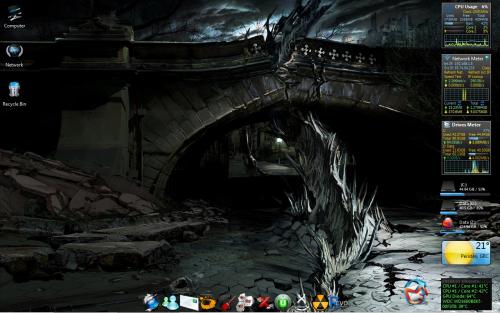Μεχρι να κανω τις αλλαγες στον χωρο αυτο ειναι το ταπεινο και τιμιο γραφειο μου Στεγαζει ενα notebook acer 5920g, σε συνδιασμο με μια zalmann nc-2000 βαση, που χρησιμοποιω για κυριο pc και το παλιο μου pc που ειχε παθει ζημια και το ειχα παρατηρησει για μια περιοδο και το οποιο υστερα αποφασισα να το επισκευασω να το κανω κατεβαστηρι και αυτα ειναι τα αποτελεσματα Το γραφειο το ειχε κατασκευασει ενας τοπικος ξυλουργος και οντως μου φανηκε πολυ χρησιμο. Τουλαχιστον για προσωρινη λυση ειναι οτι πρεπει!!!
