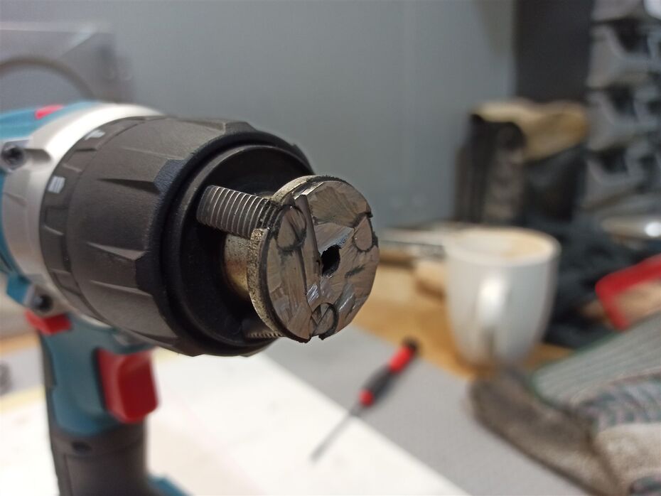Επιστροφή με την προσπάθεια αφαίρεσης του τσοκ από το κρουστικό της Bulle. https://www.skroutz.gr/s/8583847/Bulle-PLCDL-M130JST-Κρουστικό-Δραπανοκατσάβιδο-Μπαταρίας-18V-2x2Ah.html Ανάθεμα την ώρα και την στιγμή που το πήρα.... το έχω πάει ήδη παλαιότερα δύο φορές στο service και μου άλλαξαν τις μπαταρίες. Όταν πήρα τηλ. για το τσοκ μου είπαν να το πάω να κάνουν μια προσπάθεια, αλλά ενδέχεται να χαλάσει το εργαλείο! Έτσι πήρα την απόφαση να προσπαθήσω μόνος μου. Έχοντας δοκιμάσει χτυπήματα, WD40 και ελαφρύ ζέσταμα εσωτερικά του τσοκ στον άξονα, ήρθε η ώρα για δραστικά μέτρα....κόψιμο. Αρχικά αφαιρέθηκε το πλαστικό κάλυμμα του τσοκ. Αρχικά αποφάσισα να το πάω χαλαρά και παιδεύτηκα αρκετές ώρες με το σιδηροπρίονο. Στο τέλος έπιασα τον τροχό. Σειρά το τελευταίο πλαστικό του τσοκ. Προσπάθησα να διευρύνω την τρύπα να έχω καλύτερη πρόσβαση εσωτερικά στον άξονα. Τα τρυπάνια κοβαλτίου δυσκολευόντουσαν με το πολύ σκληρό μέταλλο του τσοκ. Τα Dewalt κάνουν τη δουλειά πολύ ευκολότερη, προσοχή όμως δαγκώνουν! Υπολογίστηκε βάσει της βίδας που ξεκινάει ο άξονας του μοτέρ, και μαρκαρίστηκε. Έτσι όπως το βλέπω υπάρχουν δύο λύσεις: 1) Κόβω με τον τροχό το κομμάτι -α- ώστε να μειωθεί η μάζα και να ζεστάνω πιο εύκολα το τσοκ, το πιάνω με τσιμπίδα στο -β- και το γυρίζω. Μειονεκτήματα είναι ότι με το ζέσταμα μάλλον θα χαλάσω το κιβώτιο εσωτερικά, και δύσκολα θα το πιάσω με τσιμπίδα να γυρίσει. 2) Βρίσκω μια μακριά βίδα -γ-, την βιδώνω στον άξονα του μοτέρ να μην γυρίζει και την πιάνω στη μέγγενη. Ύστερα χτυπάω πλάγια με σφυρί το τσοκ στις εγκοπές -δ- και βγαίνει. Μειονέκτημα είναι ότι η βίδα αν και Μ6 είναι ανάποδο σπείρωμα και άλλο βήμα, θα βρω; Ότι ιδέες έχετε ευπρόσδεκτες. -