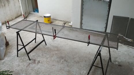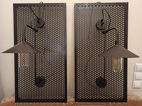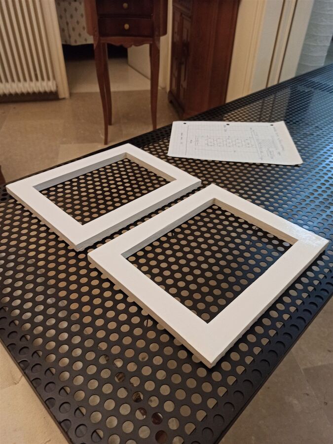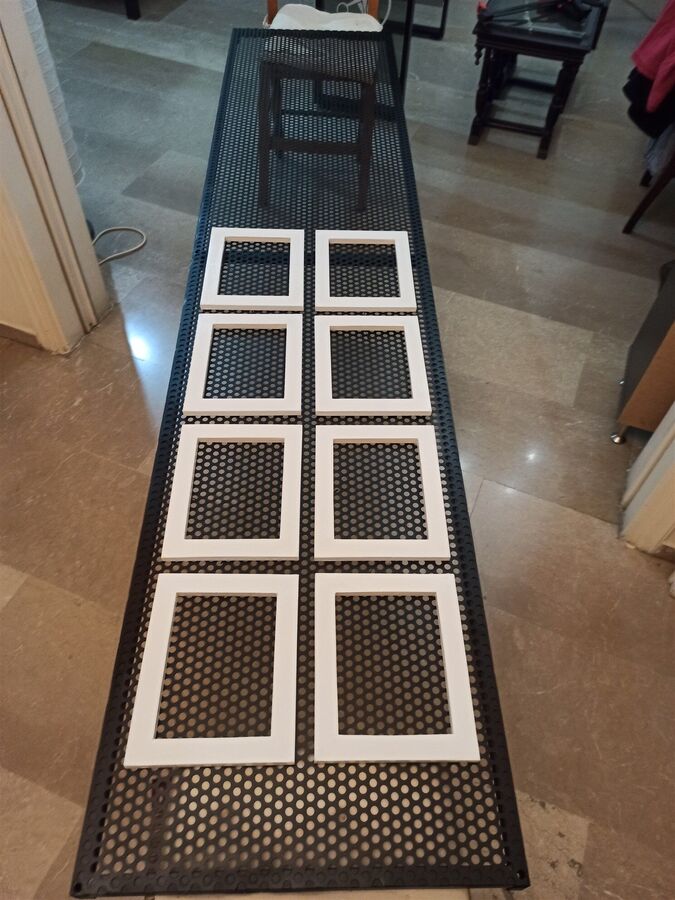 Συνέχεια. Τα κομμάτια βάφτηκαν με μαύρο σατινέ. Φτιάχτηκαν κορνίζες 26x21 από καδρόνι φάρδους 30χιλ. Βάφτηκαν σε άσπρο σατινέ χρώμα. Ταλαιπωρία καθώς μου πήραν πολλές μέρες αν δεν έχεις χρόνο. Κόλλημα, τρίψιμο βάψιμο διαδοχικά. Έψαχνα τρόπο να τις στηρίξω. Κόντινα δίχαλα καρφωτικού, και τα κάρφωσα με σφυράκι από πίσω. Τα πράσινα είναι "δεματικά" που σφίγγουν σακούλες. Μπελαλίδικα να στοιχηθούν, είναι λευκά και στο μαύρο φόντο φαίνεται αμέσως η αλφαδιά. Όπως είχα πει η κατασκευή είναι διακοσμητικού χαραχτήρα. Εδώ στολισμένη. Τα μικρότερα βάφτηκαν και τοποθετήθηκαν φωτιστικά. Βγήκαν ακριβώς όπως τα είχα σκεφτεί, το αποτέλεσμα ξεπέρασε τις προσδοκίες μου. Φυσικά έχουν ψωμί ακόμα, όταν τοποθετηθούν θα δείχνουν διαφορετικά και καλύτερα.- 2.882 απαντήσεις