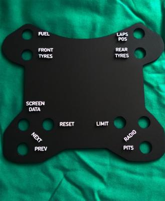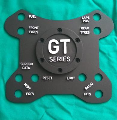 Στη συνεχεια....σκεφτομουν να φτιαξω ενα wheel plate χωρις να εχει αυτοκολητα τα οποια και χαλανε και μερικες φορες δεν φαινονται ωραια πανω στο τιμονι....Αποφασησα λοιπον να γραψω πανω στο plate τα ονοματα με οσο καλυτερη καλυψη αναγκων ενος οδηγου..Εγραψα λοιπον στο 3D σχεδιο τα ονοματα και το αποτελεσμα ειναι αυτο....Υπαρχει μια δεσμευση στο τι κανει καθε κουμπι αλλα και στα κανονικα τιμονια ή plates που κυκλοφορουν δεν μπορουμε να τα εχουμε ολα...Τα σχολια δικα σας...