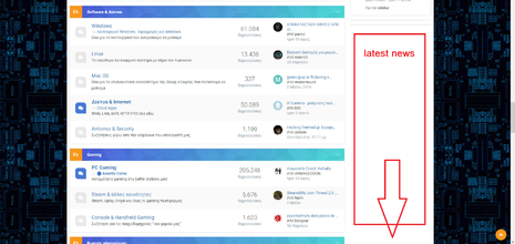 Οι στηλες δεξια "Νέες απαντήσεις" διαφημιση και μετα απο κατω τπτ... Εκει να μπει μια στηλη με τα latest news απο την αρχικη. -