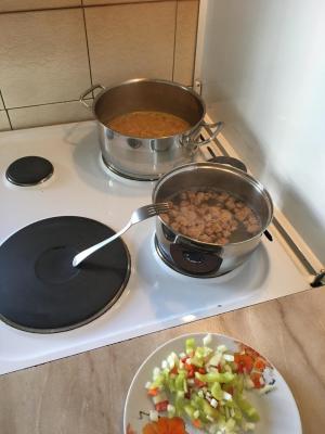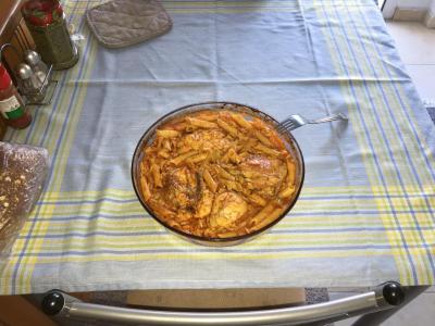 Μιας και εχω καιρο να μπω... Μισο κοτοπουλακι, που ειχε μεινει στην καταψυξη, κοκκινιστο με πενες και κριθαρακι στο φουρνο (+ καυτερη πιπερια για να ζεσταθουμε/καουμε και λιγο). -