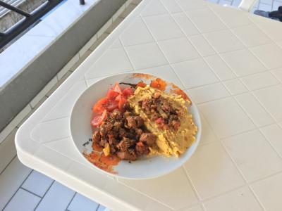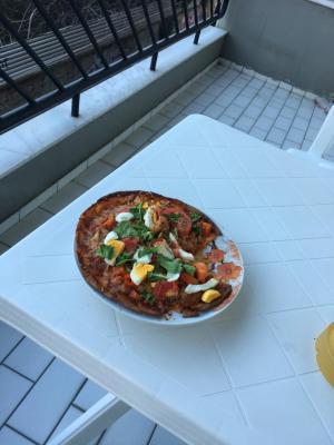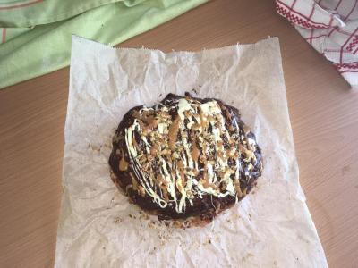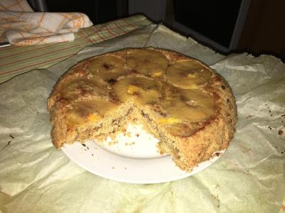 Δοκιμες παλι ειχαμε χθες... Κεικ με ταχινι και μελι (με εξτρα καρυδια, μπανανα και μηλο), συν κατι σαν πιτσα (με τορτιγια αντι για ζυμη). -