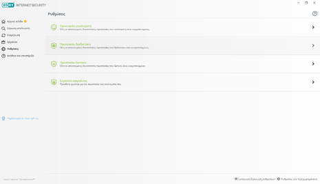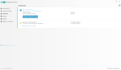 ESET Internet Security Ως νικητής στον προηγούμενο χριστουγεννιάτικο διαγωνισμό του thelab.gr, πήρα μια άδεια χρήσης για το ESET Internet Security. Μη έχοντας χρησιμοποιήσει ξανά σουίτα internet security με πλήρη άδεια χρήσης, κάνω αυτή την παρουσίαση τόσο για να περιγράψω τα χαρακτηριστικά της , όσο και για να γράψω τις εντυπώσεις μου από την χρήση, για ένα έτος, ενός προϊόντος με premium χαρακτηριστικά που δεν υπάρχουν στις free εκδόσεις. Σχετικά με το ESET Internet Security Πέρα από την λειτουργία ως antivirus, στη συγκεκριμένη έκδοση υπάρχει ενσωματωμένο firewall, προστασία από phishing, spam, καθώς και λειτουργία προστασίας τραπεζικών συναλλαγών. Ακόμη, υπάρχει γονικός έλεγχος, και προστασία anti-theft, λειτουργίες που δεν χρησιμοποίησα. Η εγκατάσταση είναι πραγματικά απροβλημάτιστη, για οποιοδήποτε χρήστη, και αποτελείται από την λήψη του προγράμματος, την εκτέλεση της εγκατάστασης και την εισαγωγή του κλειδιού. Έπειτα, το πρόγραμμα είναι απόλυτα λειτουργικό. Ακολουθεί μια περιγραφή του προγράμματος. Αρχική σελίδα Μετά την εγκατάσταση, η αρχική σελίδα είναι η ακόλουθη: Απλός σχεδιασμός, που σου δίνει με μια ματιά τις αναγκαίες πληροφορίες και τυχόν προβλήματα που υπάρχουν. Σε κανονική λειτουργία, το κυρίαρχο χρώμα είναι το πράσινο. Σε περίπτωση που η προσοχή του χρήστη απαιτείται, όπως εδώ που λήγει η άδεια χρήσης, ο χρωματικός συνδυασμός αλλάζει σε κίτρινο, ενώ σε περίπτωση σοβαρού προβλήματος, ή τυχόν απενεργοποίηση των σημαντικών μονάδων προστασίας, το χρώμα αλλάζει σε κόκκινο. Αυτός ο χρωματικός κώδικας καθιστά πιο απλή την κατανόηση του επιπέδου απειλής. Σάρωση υπολογιστή Προχωρώντας στις επιλογές σάρωσης του υπολογιστή, υπάρχουν δύο επιλογές, είτε η «Σάρωση του υπολογιστή» που σαρώνει το σύστημα με τις default επιλογές, είτε η «προηγμένες σαρώσεις», που δίνουν περισσότερες επιλογές στον προχωρημένο χρήστη. Οι προηγμένες σαρώσεις δίνουν την δυνατότητα επιλογής της μονάδας δίσκου, θέσης δικτύου, καθώς και το βάθος σάρωσης, από την γρήγορη έξυπνη σάρωση, έως την αργή βαθιά σάρωση. Ενημέρωση Εδώ υπάρχουν πληροφορίες για τυχόν ενημερώσεις, καθώς και για την έκδοση του προγράμματος. Επίσης, υπάρχει η επιλογή του ελέγχου για ενημερώσεις, παρότι στον ένα χρόνο που το χρησιμοποιώ δεν την χρησιμοποίησα ποτέ, καθώς οι ενημερώσεις γίνονται αυτόματα. Εργαλεία Τα εργαλεία χωρίζονται σε δύο κατηγορίες, την βασική, που είναι ορατή και την πιο προχωρημένη, που εμφανίζεται με την επιλογή «Περισσότερα εργαλεία» κάτω δεξιά. Βασική Σε αυτό το κομμάτι παρέχονται χρήσιμες πληροφορίες σχετικά με την εποπτεία του τοπικού δικτύου, αναφέροντας τις συνδεδεμένες συσκευές και οι επιλογές για την ενεργοποίηση των μονάδων προστασίας των τραπεζικών συναλλαγών, και της προστασίας anti-theft. Η εποπτεία του τοπικού δικτύου εμφανίζει σε είτε σε γράφημα, είτε σε λίστα, τις συσκευές που είναι συνδεδεμένες στο τοπικό δίκτυο, και πληροφορίες σχετικά με αυτές, όπως την IP και την MAC address. Η προστασία τραπεζικών πληρωμών, εκκινεί μια custom έκδοση του Firefox, προσαρμοσμένο από την ESET με στόχο την ασφάλεια των τραπεζικών συναλλαγών. Σε περίπτωση που είναι ενεργοποιημένη, και πληκτρολογήσεις σε άλλο browser την διεύθυνση e-banking τράπεζας η του PayPal μεταφέρεσαι απ’ ευθείας στον custom browser της ESET. Η προστασία anti-theft λειτουργεί με την δημιουργία λογαριασμού ESET και μπορεί να βοηθήσει στον εντοπισμό του υπολογιστή, την παρακολούθηση του κλέφτη αν υ