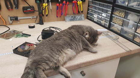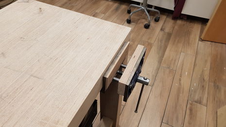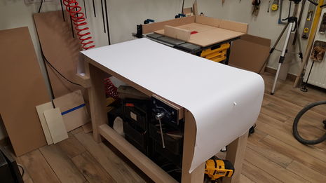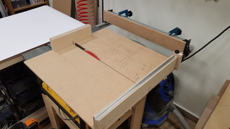 Πέρα από το συμμάζεμα που έπεσε καθώς θύμιζε βομβαρδισμένο τοπίο ο χώρος, καθώς προηγήθηκαν μερικές κατασκευές (δυστυχώς δεν είχα χρόνο να τραβήξω φώτος), δημιουργήθηκαν και κάποιες ανάγκες. Οπότε αφού τελείωσα με τις δουλειές ξεκίνησε η κατασκευή τους. Αρχικά ένα κλασικό sled για το δισκοπρίονο. Δεν είναι fancy, δεν λες ουάου μόλις το δεις, αλλά είναι πρακτικό και ακριβείας. Όποιος έχει δει το 5 cut method στο youtube μη νομίζει ότι θα κάνει μόνο μία δοκιμή όπως οι youtubers. Προσωπικά έκανα 5 στο σύνολο μέχρι να φτάσω σε ακρίβεια 0,03mm στα 50cm. Είναι βέβαια βαρύγδουπο νούμερο να το διαβάζεις, καθώς εξαρτάται και από την ακρίβεια στα όργανα μέτρησης, αλλά η γωνιά έδειξε 90o και αυτό έχει σημασία. Αξιώθηκα επιτέλους και έβαλα την μέγγενη στον πάγκο. Παίζει να την είχα πάνω από χρόνο στην άκρη... Και κάτι πολύ πρακτικό. Κάλυψη της επιφάνειας του πάγκου για να μην λερώνεται κατά τις "βρώμικες" δουλειές. Βαψίματα κλπ Η σωλήνα που χρησιμοποιήθηκε ήταν από τις κολώνες από τα κάγκελα αλουμινίου. Έίχαν μείνει αρκετά ρετάλια και ευτυχώς τα κράτησα όλα. Μέχρι πριν μερικές μέρες άπλωνα ότι νάιλον είχα διαθέσιμο... Και εκεί που τακτοποιούσα, βρήκα έναν μηχανισμό ρολογιού που ειλικρινά ούτε ξέρω πως βρέθηκε εκεί που βρέθηκε Ε πήρα ένα ρετάλι από κόντρα πλακέ, μπήκε ο μηχανισμός με τους δείκτες, έπεσε και το ανάλογο τρίψιμο/βερνίκωμα και έτοιμο. Απλό λιτό και πάει σωστά Σε όλα αυτά βέβαια είχα και τον βοηθό παρών/απών