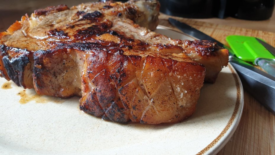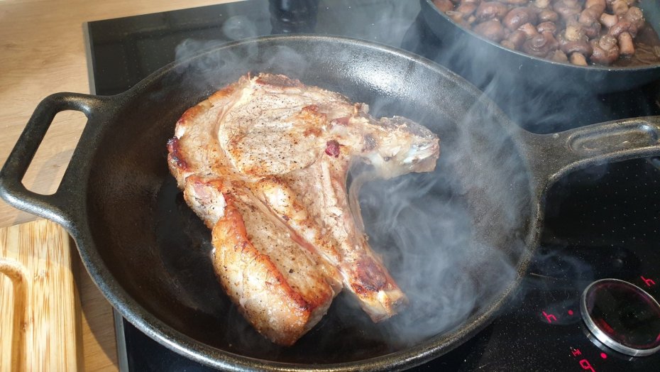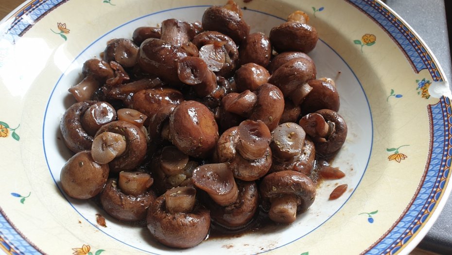 Μια μοσχαρισια γαλακτος 1.1 κιλά ξεκίνησε στο φούρνο και μετά στο τηγάνι μιας και το μπάρμπεκιου για λίγο καιρό θα σκονίζεται Μανιταράκια με κόκκινο κρασί και πατατούλες