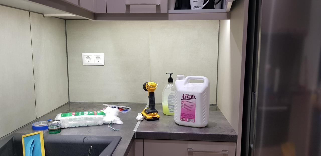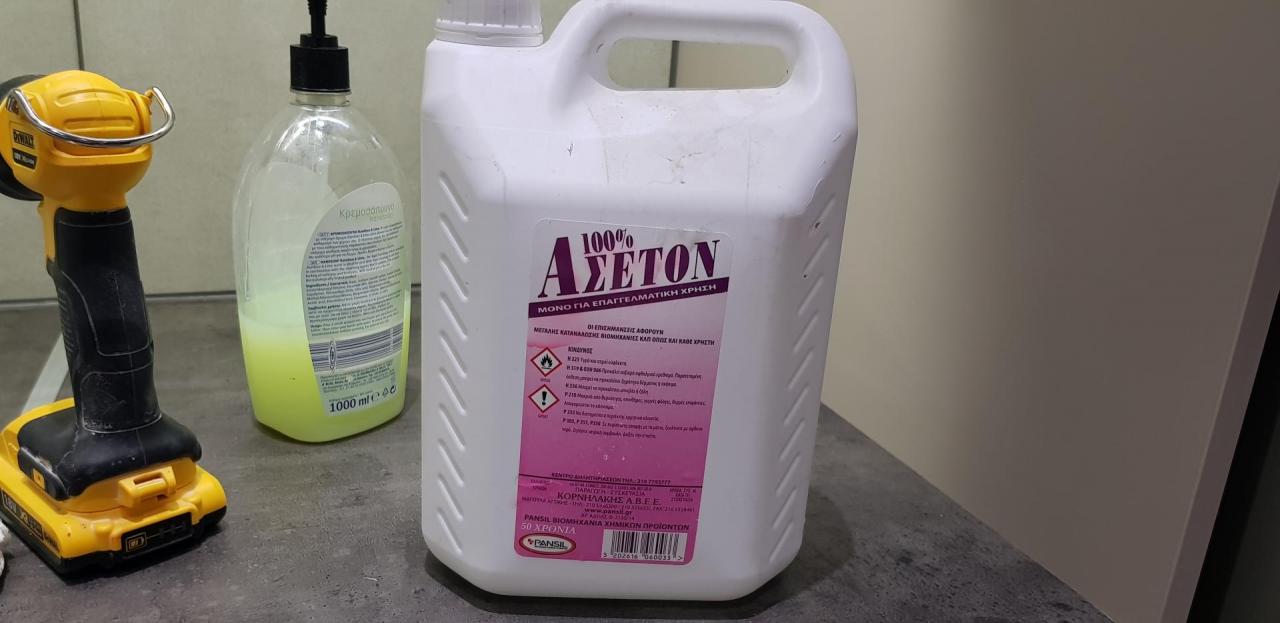 Καιρό έχω να ανεβάσω κάτι και ζήλεψα για να είμαι ειλικρινής Μετά από καιρό είναι έτοιμη η κουζίνα στο ισόγειο! Τελευταία πινελιά από την οποία έχω και φωτογραφίες η εγκατάσταση στα πλακάκια. Διάλεξα ένα οικονομικό γρανιτοπλακάκι 60χ60. Να πω ότι παρόλο που έχω βάλει αρκετά πλακάκια, πλακάκι 60χ60 δεν είχα τολμήσει ποτέ. Επίσης, να πω ότι όποιος ενδιαφέρεται να εγκαταστήσει πλακάκια και σκέφτεται να αγοράσει κόφτη καλά θα κάνει να σκεφτεί τους κόφτες της Bulle τύπου Sigma. Σε ότι τον έχω χρειαστεί από την μέρα που τον πήρα με βγάζει ασπροπρόσωπη. Ο συγκεκριμένος είναι ο Bulle BTC-ML638SN 626111 Με τιμή λιανικής 140€ και ωφέλιμο μήκος κοπής τα 95cm. Υπάρχουν και μικρότεροι και οικονομικότεροι. Σημεία που θέλανε προσοχή ήταν οι κοπές στις πρίζες, που αφού σημαδεύτηκαν έγιναν με γωνιακό τροχό και διαμαντόδισκο ξηράς κοπής της Rhodius τον DG30 στα 115mm. Και άλλο ένα που ήθελε κάπως προσοχή ήταν η μικρή κολώνα που φαίνεται σε μία άκρη για την οποία επέλεξα προφίλ αλουμινίου αντι για φαλτσοκοπή. Αφού μπήκαν όλα στη θέση τους σειρά πήρε ο αρμόστοκος. Είχα στην διάθεση μου αρμόστοκο της Mapei και αρμόστοκο της Sika. Προτίμησα να βάλω τον πρώτο μιας και στο τσουβαλάκι είχε μείνει σχεδόν όση ποσότητα χρειαζόταν. Και οι δύο παραπάνω εταιρίες είναι κορυφαίες. Να πω ότι στην κουζίνα (συσκευή) προτίμησα να μπει το ολόκληρο πλακάκι και δεν ξεκίνησα από την γωνία όπως κάνουν συνήθως. Επειδή όμως τα είχα μελετήσει τόσο καλά (ναι καλά καθαρά θέμα τύχης ) τελείωσα με ολόκληρο στην κολόνα. Ο λόγος που το προτίμησα αυτό ήταν να αποφύγω να είναι ο αρμός στη μέση της εστίας μιας και μελλοντικά θα βρομίσει από τις πιτσιλιές (τηγάνια, κατσαρόλες κλπ) Θα παρατηρήσατε ότι αρμόστοκο έβαλα μόνο στις επιφάνειες όπου υπάρχουν αρμοί και όχι στις γωνίες. Πχ κολόνα επενδεδυμένη με πλακάκι από την πλευρά της κουζίνας και του νεροχύτη. Επίσης, μελαμίνη με πλακάκι. Σε εκείνα τα σημεία, λόγω διαφορετικής συστολής διαστολής των υλικών, αν μπει αρμόστοκος θα ραγίζει με την πάροδο του χρόνου. Και αφού είχα επιλέξει ανθρακί αρμόστοκο, πήρα δύο σιλικόνες της Kerakoll σε χρώμα ανθρακί και έγινε το τελείωμα. Μου ξέφυγε σε ένα δύο σημεία αλλά αύριο θα το φτιάξω Και τέλος επειδή πολλοί κατά καιρούς αναρωτιούνται πως φεύγει η σιλικόνη, η απάντηση είναι απλή. Με ασετόν