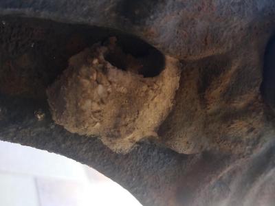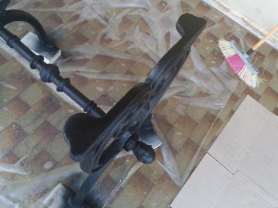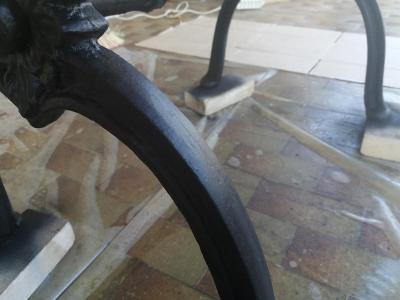 E η πρώτη ήταν απλά μια αποτυχία που θέλω απλά να την ξεχάσω. Το ξαναέτριψα να βγει το rust conversion, έβαλα αστάρι μετάλλων (συνίσταται ειδικά για αυτοκίνητα) και μετά από 5 ώρες πέρασα χρώμα υψηλής αντοχής. Και τα δύο προϊόντα είναι της εταιρίας CosmoLac τα οποία τα έχω σε πολύ μεγάλη εκτίμηση και τα βρίσκετε εύκολα σε χρωματοπωλεία που φέρνουν προϊόντα της. Το χρώμα ήταν μαύρο ματ. Και τα δύο βγαίνουν σε μορφή σπρέι και τα εχω χρησιμοποιήσει πολλές φορές τα τελευταία χρόνια. Μακάρι να ακολουθούσα αυτή τη μέθοδο από την αρχή και να γλίτωνα το ξαναμανα τρίψιμο. Σαν τελευταία συμβουλή για όποιον έχει σκοπό να τρίψει με τροχούς και να εχει επάνω καμπάνες ή συρματόβουρτσες. Μην πάτε με σορτσάκια. Ακόμα βγάζω κομμάτια που καρφώθηκαν στο τζιν που φορούσα. Βάλτε ακόμα και κράνος χωρίς υπερβολή, μιας και κομμάτια φευγουν. -