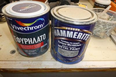 Γιώργο το Hammerite παρόλο που λένε ότι έχει χαλάσει εγώ το έχω κατευχαριστηθεί. Με αυτό χωρίς να τρίψω είχα βάψει την σιδερένια σκάλα που βγάζει στην ταράτσα η οποία αν θυμάσαι όταν έφτιαχνα το εργαστήριο μου, ήταν σε άθλια κατάσταση και έχουν περάσει αρκετά χρόνια. Η φωτογραφία που ακολουθεί είναι πριν 5 λεπτά τραβηγμένη και δεν εχει πάθει τίποτα. Sorry για το πολύ πριονίδι υπόψιν δεν την προσέχω καθόλου, ανεβοκατεβάζω εργαλεία και βαριά αντικείμενα και μέχρι πρόσφατα που έφτιαξα την σιδερόπορτα έμπαινε και νερό μέσα Ενα ακόμα προϊόν που μου αρέσει είναι το σφυρήλατο της vivechrom. Με αυτό έβαψα την σιδερόπορτα προσφατα αλλά είχα βάψει και τα κάγκελα στην πίσω μεριά που βγάζουν στην αυλή μέσω σκάλας. Εχουν περάσει χρόνια και είναι επίσης μια χαρά Σε άλλα νέα νενικήκαμεν κύριε πρόεδρε Εγινε σαν καινούριο. Επίσης παραθέτω και φωτογραφίες από το πως ήταν... Μέχρι και σφηκοφωλιές βρήκα επάνω του. Χαλάλι η ταλαιπωρία πραγματικά -