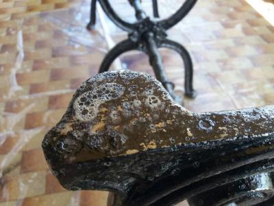 Καλησπερα σας. Προμηθευτικα το erlac rust conversion. Μετατρεπει τη σκουρια σε βαθυ μελανι/μαυρο χρωμα στα μεταλλα. http://erlac.gr/προϊόντα/rust-conversion/ Ακολουθησα τις οδηγιες που ειχε η συσκευασια κατα γραμμα και περασα το προιον στο μεταλλο. Το αποτελεσμα ακολουθει Τι φταιει και εχει αφησει αυτες τις φουσκαλες. Υποτιθεται επρεπε να παρω μαυρη επιφανεια και ματ και οχι τους αφρους απο τους καταρακτες του Νιαγαρα. Το μαύρο χρωμα το εχει δωσει και μαλιστα ειναι πολυ ομορφο αλλα δυστυχως εχω φουσκαλες επανω. Δεν "εβρασε" αν καποιος σκεφτει κατι τετοιο. Να το τριψω παλι να βγαλω τη λαλακια αυτη ή εχετε καποια αλλη πρόταση; Ή ειναι φυσιολογικο κατι τετοιο; -