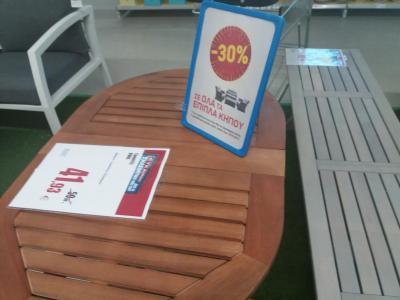 Λοιπόν με φωτορεπορταζ (άθλιες οι φωτο αλλά πραγματικά βιαζόμασταν και το κινητό δε προσφέρεται) 30% κάτω σε έπιπλα κήπου 30% κάτω σε ηλεκτρικά εργαλεία LUX 30% κάτω σε λαμπτήρες Philips Εχουν μείνει και κάποια πράγματα από τις προσφορές της προηγούμενης φοράς. Οι φωτογραφίες είναι από το Praktiker στην Πειραιώς για όποιον ενδιοαφέρεται. Εχετε το νου σας στην επιλογή των επίπλων κήπου μιας και οι τιμές είναι δελεαστικές αλλά η ποιότητα των περισσοτερων καθόλου. Για τα LUX είπα την γνώμη μου αν και το μικρό φαλτσοπριονάκι ίσως σώσει κάποιους από εσάς. -