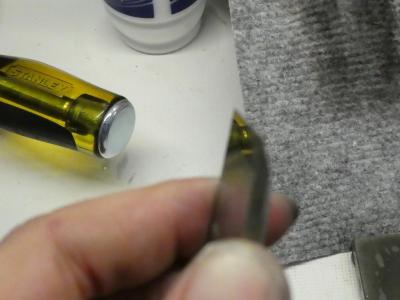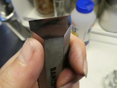 Εξυπνο εργαλειάκι Στέλιο καλορίζικο Μιας και βρήκα χρόνο και έκανα ένα ακόμα ας το δουμε βήμα βήμα πως αλλάζει το σκαρπέλο Στην πρώτη φώτο βλέπετε το εργοστασιακό τρόχισμα με το διπλό bevel σε ένα bahco σκαρπέλο Εδώ η πίσω μεριά μετά από το πέρασμα στην 400αρα πέτρα και το πόση διαφορά έχει η πίσω όψη Εδώ μετά από αρκετή ώρα στην 400αρα. Ήταν μεγάλο το σκαρπέλο και το ατσάλι του δεν ήταν σαν της amtech οπότε μου άλλαξε τα φώτα. Ετριβα έτριβα και δεν έλεγε να φύγει το micro bevel... Ισως έπρεπε να βάλω γυαλόχαρτο να το πάρω για αρχή αλλά το άφησα... Βλέπουμε όμως ότι αρχίζει να εξαφανίζεται το double bevel και πάμε ολοταχώς στο μονό Στη δεύτερη φώτο σχεδόν πήγαμε στο μονό (αφού σχίσαμε και το γάντι) Μετά από το γυαλισμα με την glanol βλέπουμε με το bahco το stanley ή τεσπα το χέρι της φωτογραφου Δε θα κάνω κανένα σχόλιο στο αν κόβει καλά ή όχι πλέον -