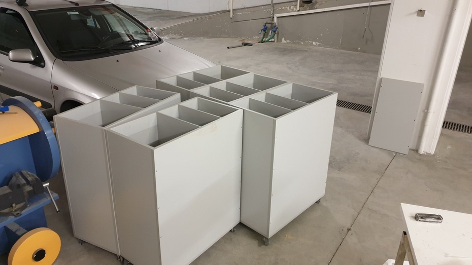 Καιρό έχω να ανεβάσω κάτι αλλά πραγματικά παρόλο που κάθε μέρα γίνονται διάφορα δεν έχω χρόνο για ένα κλικ... Αυτή τη φορά βρήκα την ησυχία μου στο υπόγειο και δημιουργήθηκαν 10 τροχήλατα, που σκοπό έχουν να φιλοξενήσουν υλικά συσκευασίας που παράγουν μηχανές. Η κατασκευή είναι απλή σαν ιδέα και σαν σχήμα, αλλά το βασικό είναι ότι βόλεψε. Ανοίκτηκαν τρύπες για καβίλιες για εύκολη και γρήγορη ευθυγράμμιση των κομματιών, φρεζαρίστικαν τα πλαϊνά για να κουμπώσουν τα διαχωριστικά, μπήκε sika και όχι ξυλοκολλα στις ενώσεις (μελαμίνη γαρ) και βιδώθηκαν. 4 ροδάκια ανα κατασκευή και έτοιμα... Και ο όγκος αυτών που χρειάστηκα φαίνεται παρακάτω Ολα τα φρεζαρίσματα έγιναν με το ρουτερ μπαταρίας της dewalt που από τότε που το πήρα εκτελεί υπερωρίες!! Εξαιρετικό εργαλείο και πραγματικά το να μην έχεις καλώδιο ειδικά σε τέτοιου είδους εργαλεία είναι σωτήριο.- 2.882 απαντήσεις
