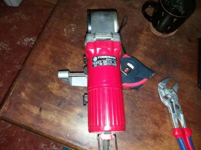 Δεν έκανε καιρό να ασχοληθώ στη ταράτσα με τον τροχό σήμερα, οπότε αναβάλλεται για αύριο το τεστ ντράιβ Σε άλλα νέα πήγα από τον Παυλάτο παρέα με έναν πολύ καλό φίλο και αγόρασε ένα ρούτερ της Black&Decker το KW1600EKA-QS και εκει με περίμενε ένα δώρο. Ενας ταινιολειαντήρας τούμπανο που κάνει αυτόν που έχω να δείχνει παιχνιδάκι. Ιταλός ο νέος Tomesani TB20. Παλιό αλλά καλοδιατηρημένο εργαλείο. Παίζει να έχω ένα απο τα λίγα κομμάτια που υπάρχουν στην Ελλάδα Την μάρκα δεν την ήξερα και λογικό μιας και είμαι νέα στον τομέα των εργαλείων. Εκανα μία δοκιμή πριν μπει στο ράφι και είναι πραγματικό θηρίο. Παρόλο που είναι μικρός σε μέγεθος έχει βάρος 4 κιλά!! Είναι και κόκκινος -