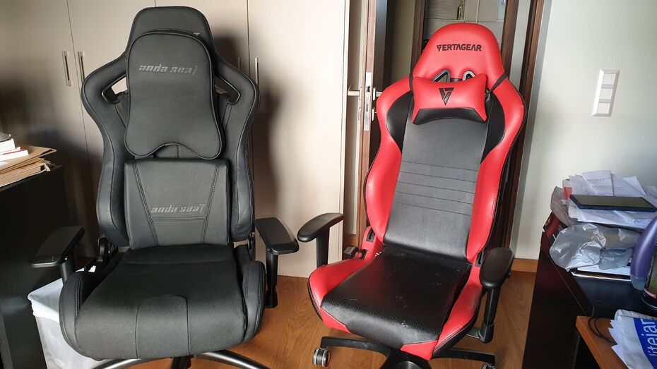 Καρεκλα Anda dark knight που ταιριαξε γαντι στον νεο κατοχο. Πολυ καλη κατασκευη. Εκατσα πανω της κ χαθηκα βεβαια, ουτε καν ακουμπαγα κατω, αλλα ηταν ωραια η αισθηση. Η συναρμολογηση ηταν παιχνιδι. Μου πηρε κανα 15λεπτο. Anda Seat Gaming Chair Dark Knight - Premium Carbon Black AD12XLDARK-B-PVCB01 | Gaming Chairs | Msystems WWW.MSYSTEMS.GR Κατηγορία - Gaming Chairs - Προϊόν - Anda Seat Gaming Chair Dark Knight - Premium Carbon Black AD12XLDARK-B-PVCB01 |... Οι ροδες ειναι μεγαλες και εντυπωσιακες. Θα επανελθω μετα απο καιρο για το πως τα εχουν παει πανω στο παρκε Στο τέλος φωτο συγκριτικά με την vertagear sl2000 που εχω στο γραφειο μου πανω απο 2 χρονια. Αρκετα μεγαλυτερη σε μεγεθος η anda και λογικο μιας και ειναι η XL