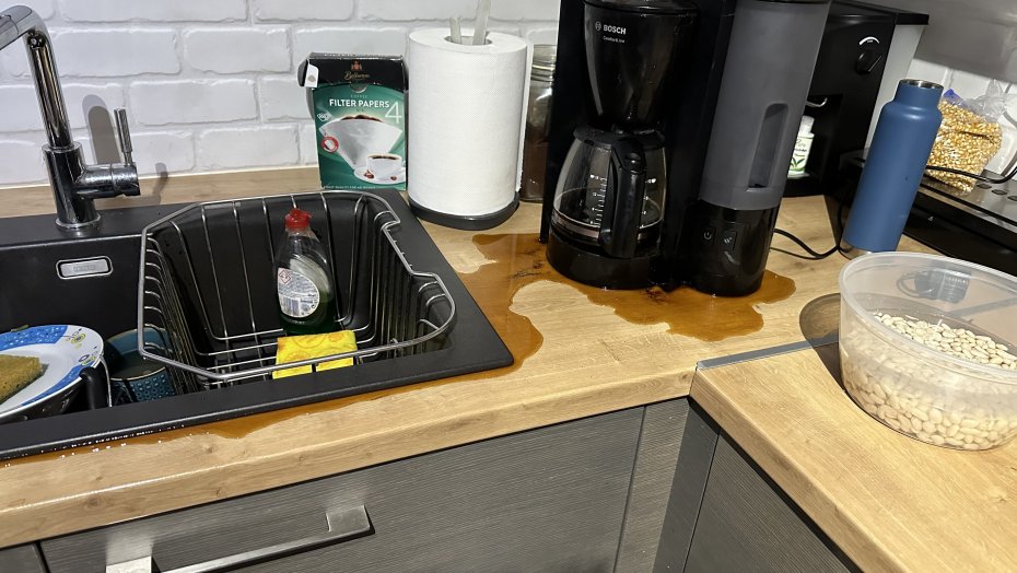 Δεν έβαλε σωστα την κανάτα. Οποτε γέμισε το πάνω δοχείο μέχρι που ξεχείλισε…