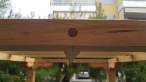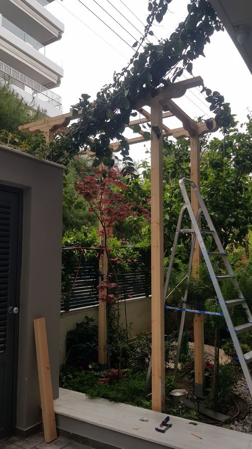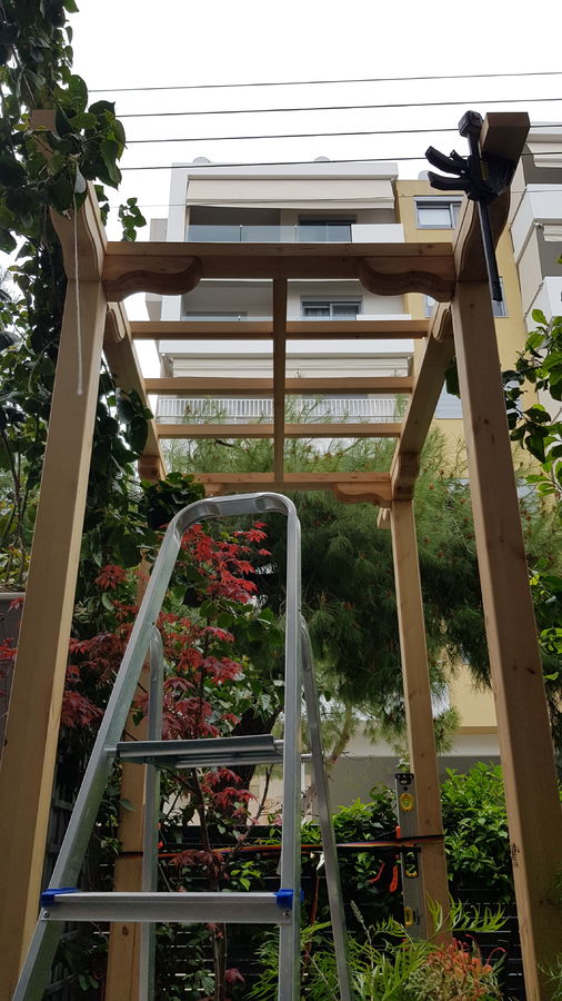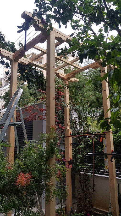Τέλος η πέργκολα και μένουν 2 περάσματα + 2 περάσματα. Τα πρώτα συντηρητικά και τα δεύτερα βερνίκια Επειδή δεν χωρούσα εντός να σχίσω τα δοκάρια έκανα μια μικρή μετακόμιση και οι βοηθοί και πάλι παρών Για μία ακόμα φορά το dewalt με έβγαλε ασπροπρόσωπη κατα το ξύρισμα του δεύτερου κομματιού' Σημαδεύτηκαν τα κομμάτια και ξεκίνησε η διαδικασία της συναρμολόγησης. Οι οπές είναι 16mm για να χωθούν μέσα οι βίδες και να κλείσει με καβίλιες η ένωση. Το ίδιο σκηνικό και στα δοκάρια αλλά με 2 βίδες αυτή τη φορά Οι Pocket holes καλές ήταν για βοήθεια αλλά εμπιστοσύνη σε τέτοιο μέγεθος δε τους έχω καμία οπότε το ίδιο σκηνικό και στα μισά κιονόκρανα. Το τρίψιμο με παίδεψε λίγο αλλά θυμήθηκα ένα ωραίο προσάρτημα που είχα και έγινε η δουλειά τσακ μπαμ Τελικό Και η πληρωμή μου... Κρέμα καραμελέ που ετοιμάστηκε μέσα στο εργαστήριο τσακ μπαμ με το φλόγιστρο @Seafalco Υγεία σε όλους μας παιδιά!- 2.882 απαντήσεις